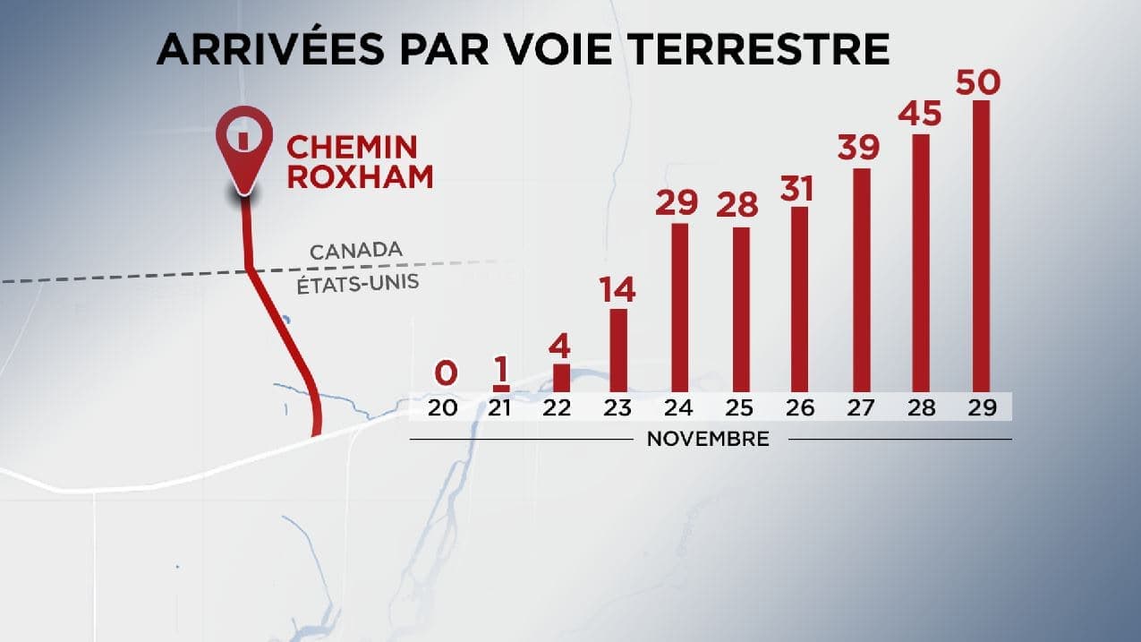 Depuis la réouverture du chemin Roxham, à Saint-Bernard-de-Lacolle, en Montérégie, le nombre d’arrivées de migrant ne fait qu’augmenter, a appris TVA Nouvelles mercredi.