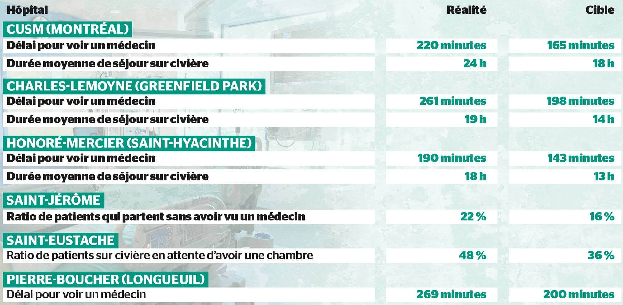 Au cours des derniers mois, chaque hôpital a été visité, et s’est vu remettre un rapport personnalisé de cibles à atteindre d’ici l’an prochain. Ils font état des problèmes à l’urgence, mais aussi de l’accès en première ligne et sur les étages.