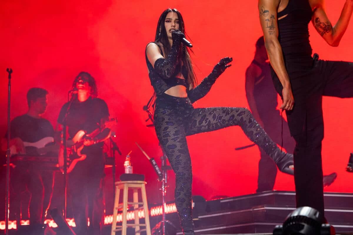 Physical, New Rules, Love Again : la chanteuse britannique, dont la popularité est montée en flèche pendant la pandémie, a enchaîné en rafale les succès planétaires, vêtue d’une tenue noire scintillante. Et malgré la présence de danseurs, d’instrumentistes et d’un chœur de chanteurs, Dua Lipa semblait complètement seule au monde, régnant sur scène comme une impératrice.