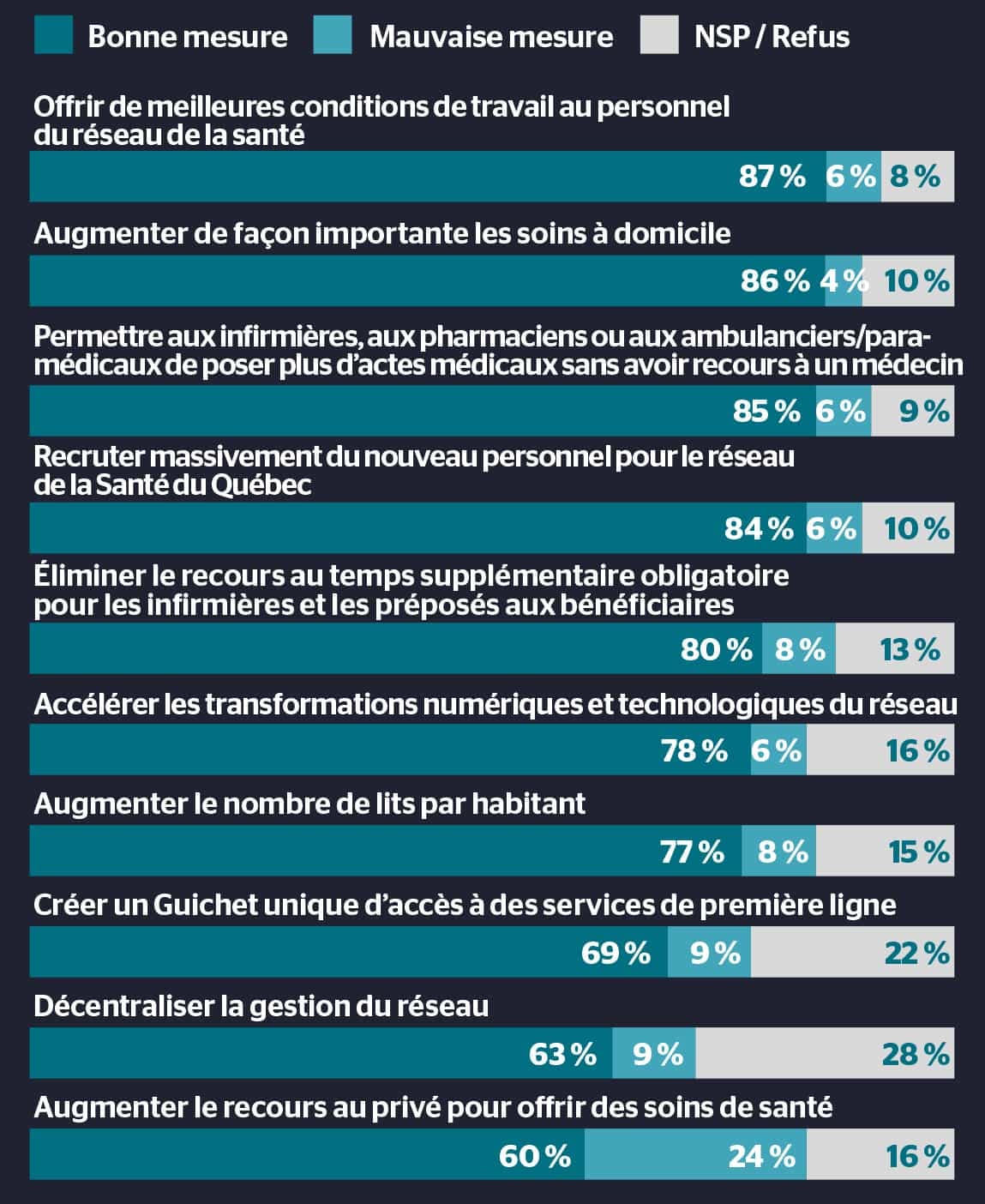 Est-ce que les mesures suivantes vous semblent être de bonnes mesures ou de mauvaises mesures pour améliorer le réseau de la santé du Québec?