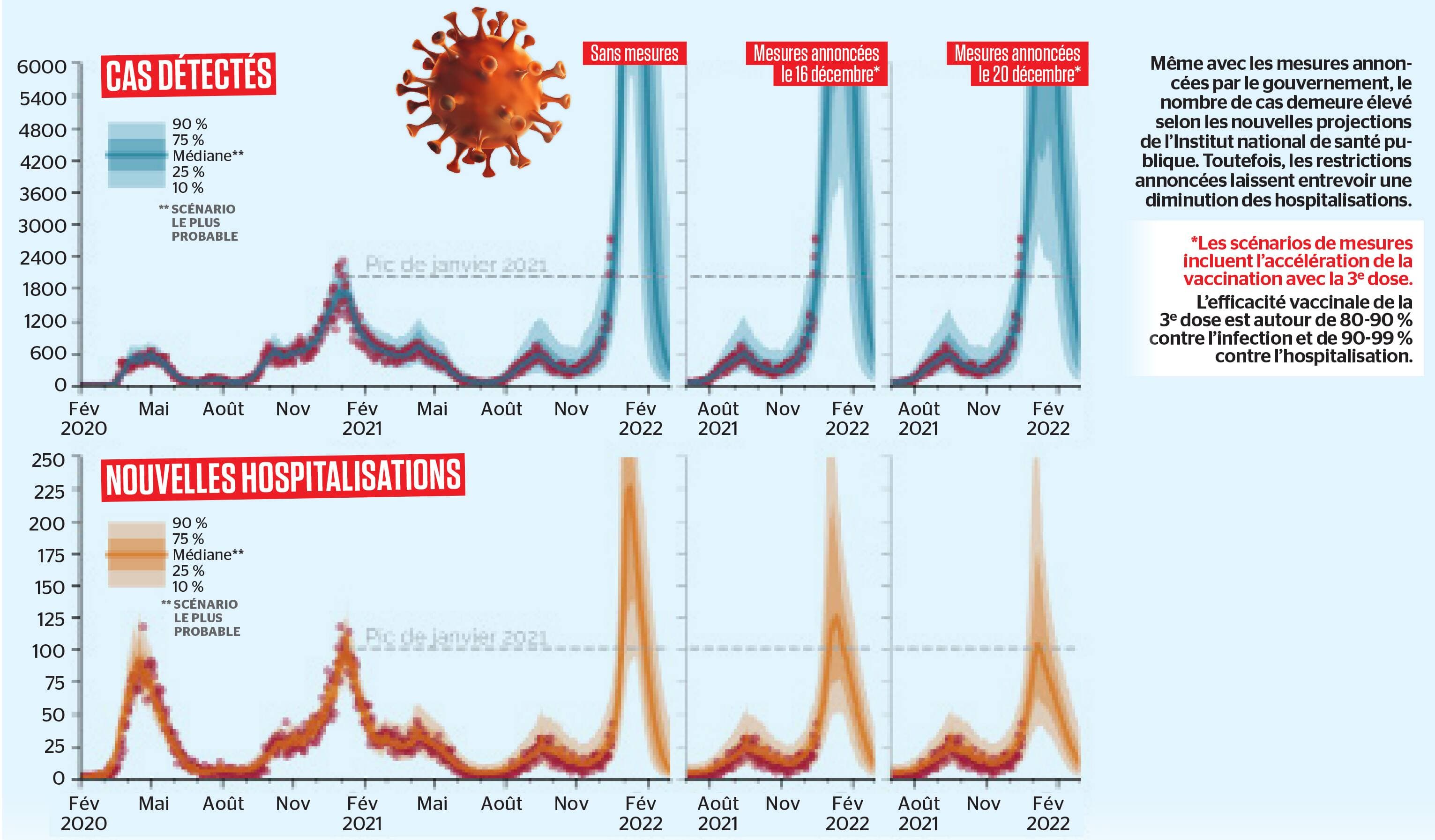 Voici les principales mesures annoncées par le gouvernement Legault jeudi afin de faire à la montée fulgurante des cas de contamination à la COVID-19 dus au variant Omicron.