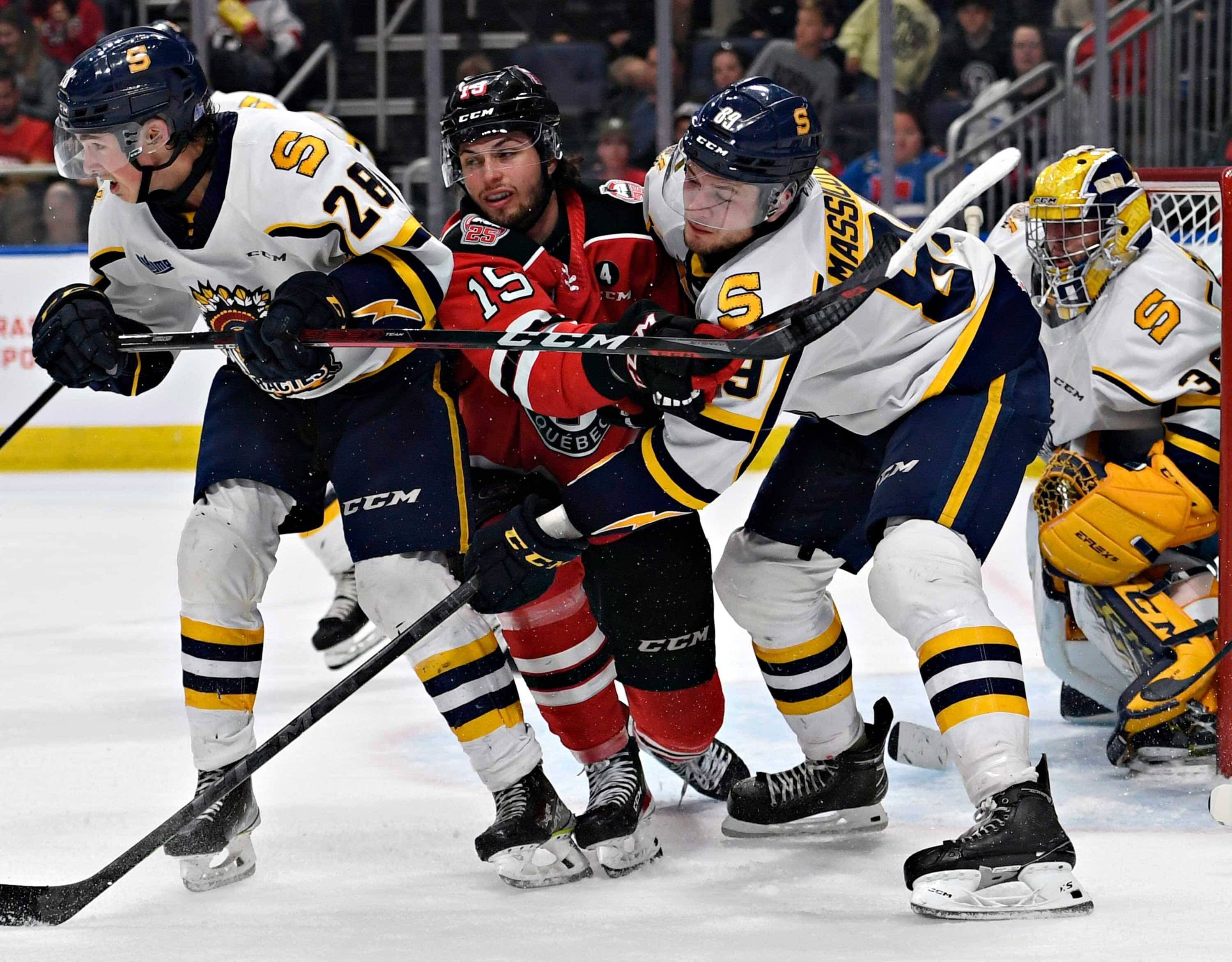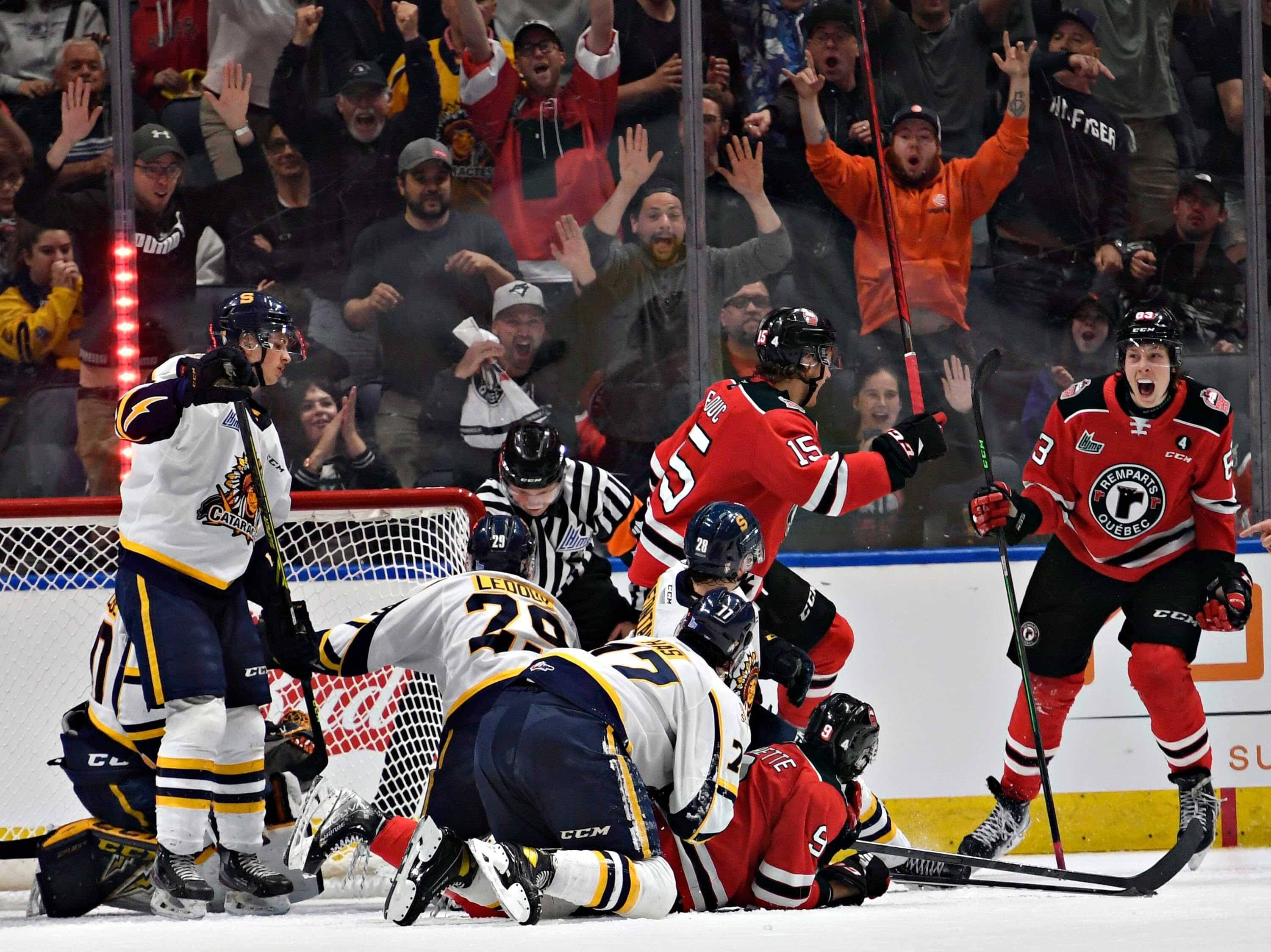 Un tir de pénalité raté pour James Malatesta avec un peu plus d’une minute à faire, un but controversé de Vsevolod Komarov quelques secondes plus tard et un entraîneur-chef des Cataractes de Shawinigan Daniel Renaud qui pique une sainte colère par la suite : le premier match de la série demi-finale entre les Remparts et les Cataractes a été haut en couleur, mercredi soir.