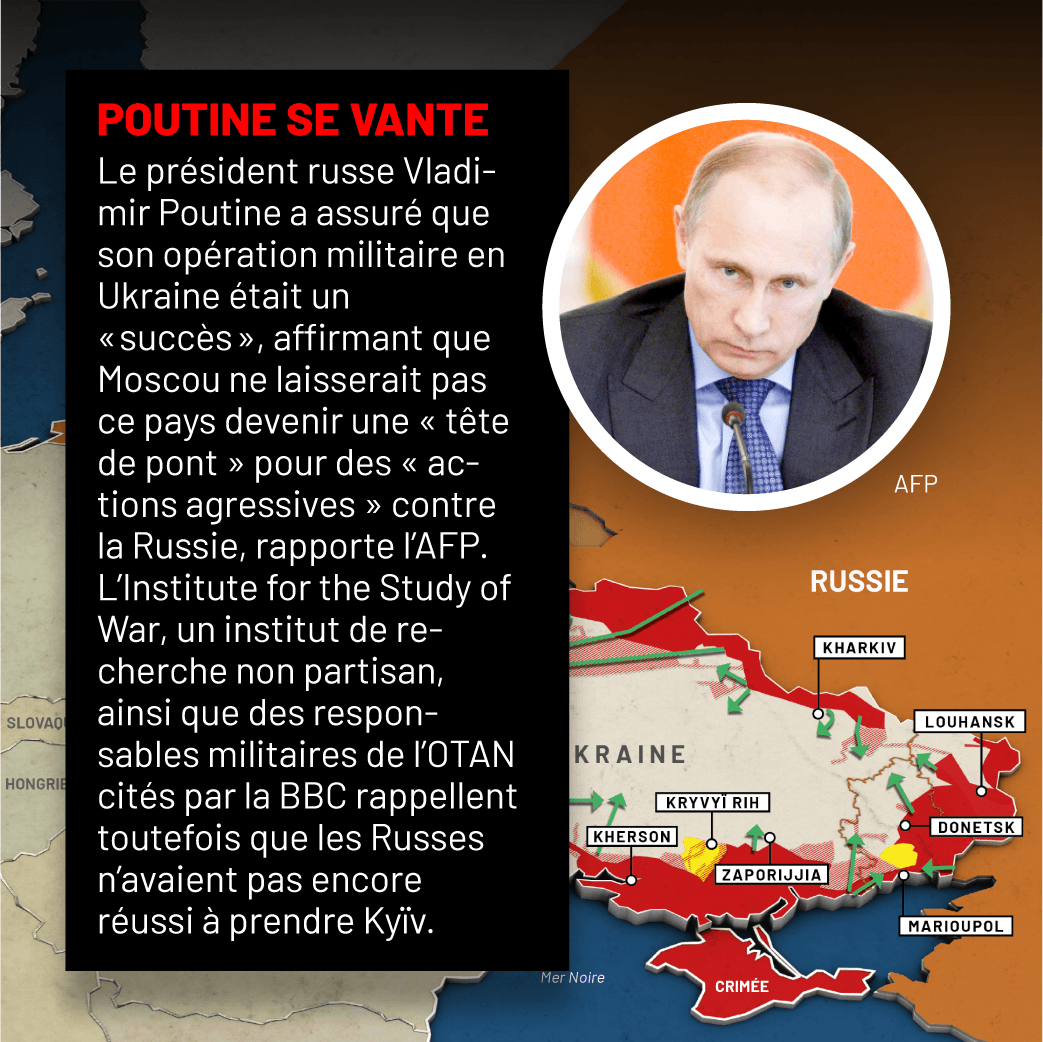Dans la portion nord du pays, la situation est demeurée la même à Kyïv. L’opposant n’est pas parvenu à encercler la ville malgré les efforts déployés. Les soldats russes ont été rejoints par des combattants syriens en Russie et en Biélorussie.