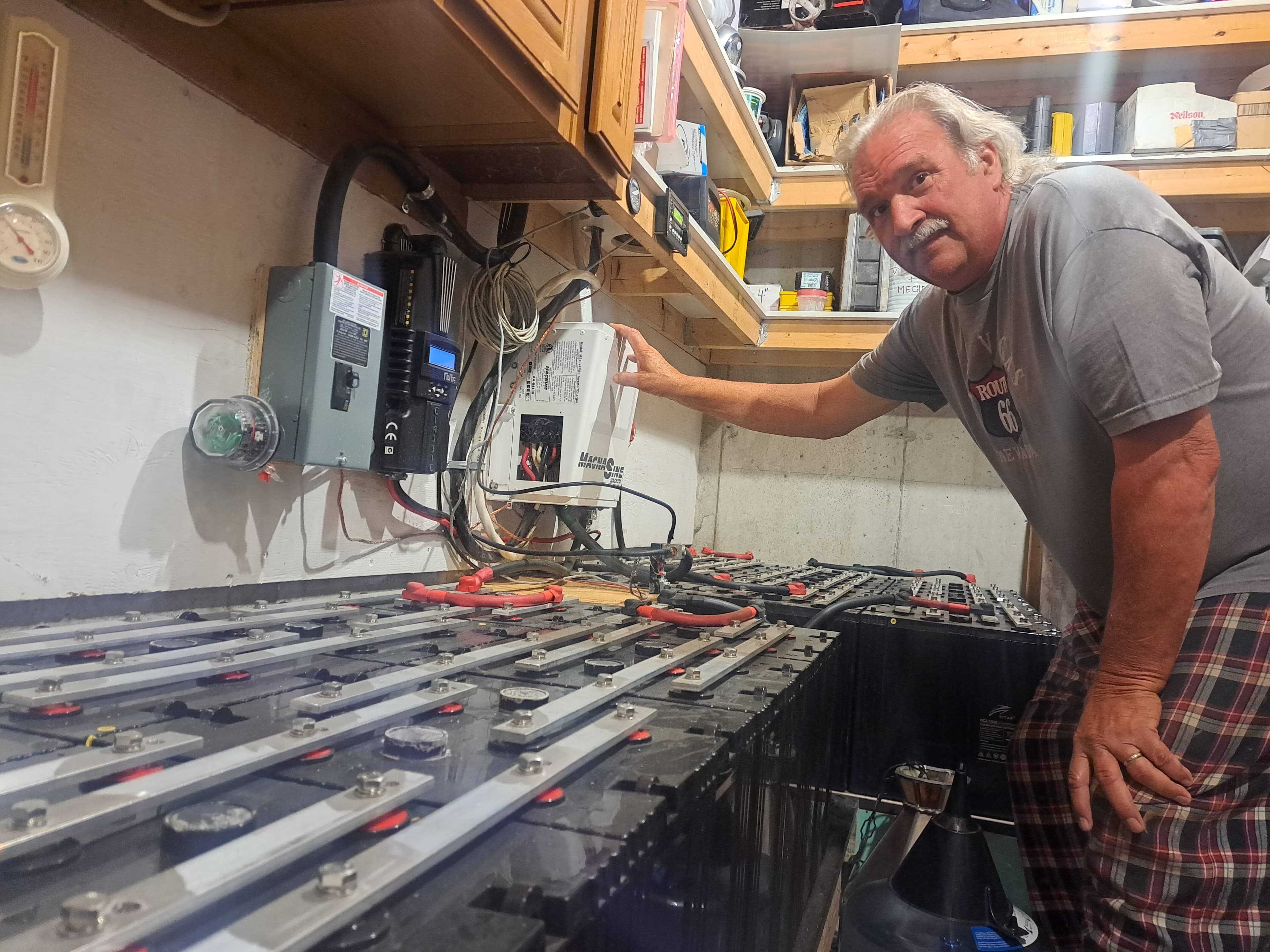 Dans les alentours de 2013, M. Morse et sa conjointe ont adopté l’énergie solaire photovoltaïque. Ils ont acheté un kit de 10 panneaux solaires de 260 watts chacun, avec l’onduleur et deux grosses batteries de 16 pouces de large, 3 pieds de long et 3 pieds de haut. Ils ont payé l’ensemble environ 15 000 $.