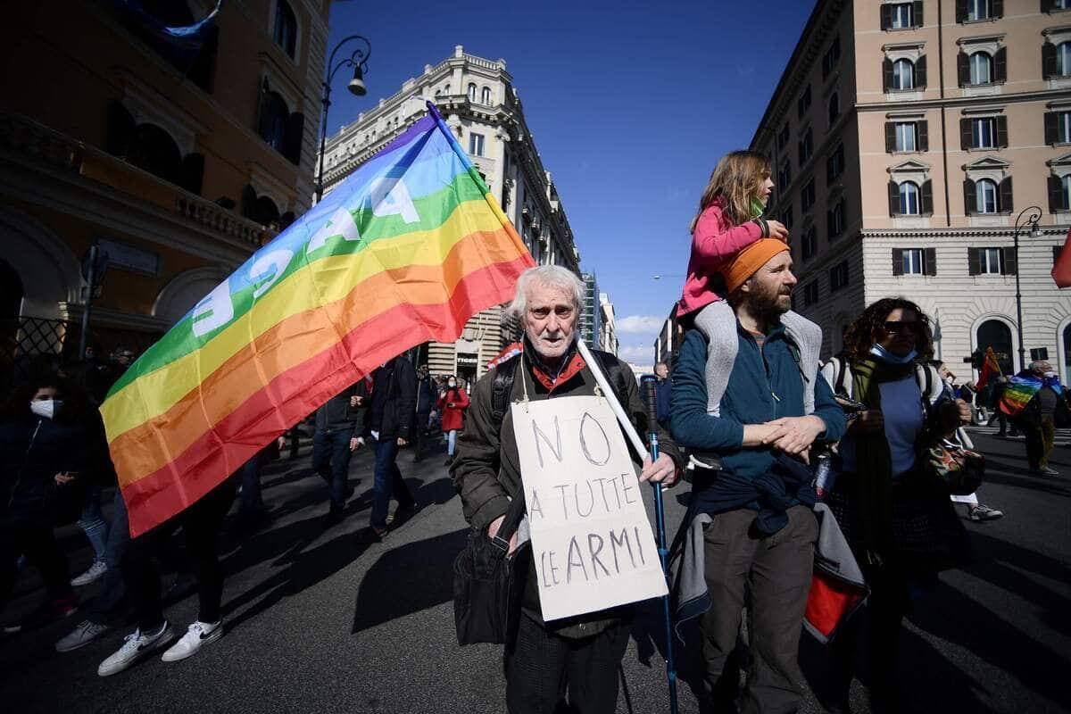 «C'est peut-être une des premières vraies manifestations pour la paix. Ici personne ne croit qu'on fait la paix avec les armes, qu'on la fait en envoyant des armes à l'une des parties», l'Ukraine, a déclaré à l'AFP le célèbre caricaturiste, acteur et écrivain italien Vauro Senesi.