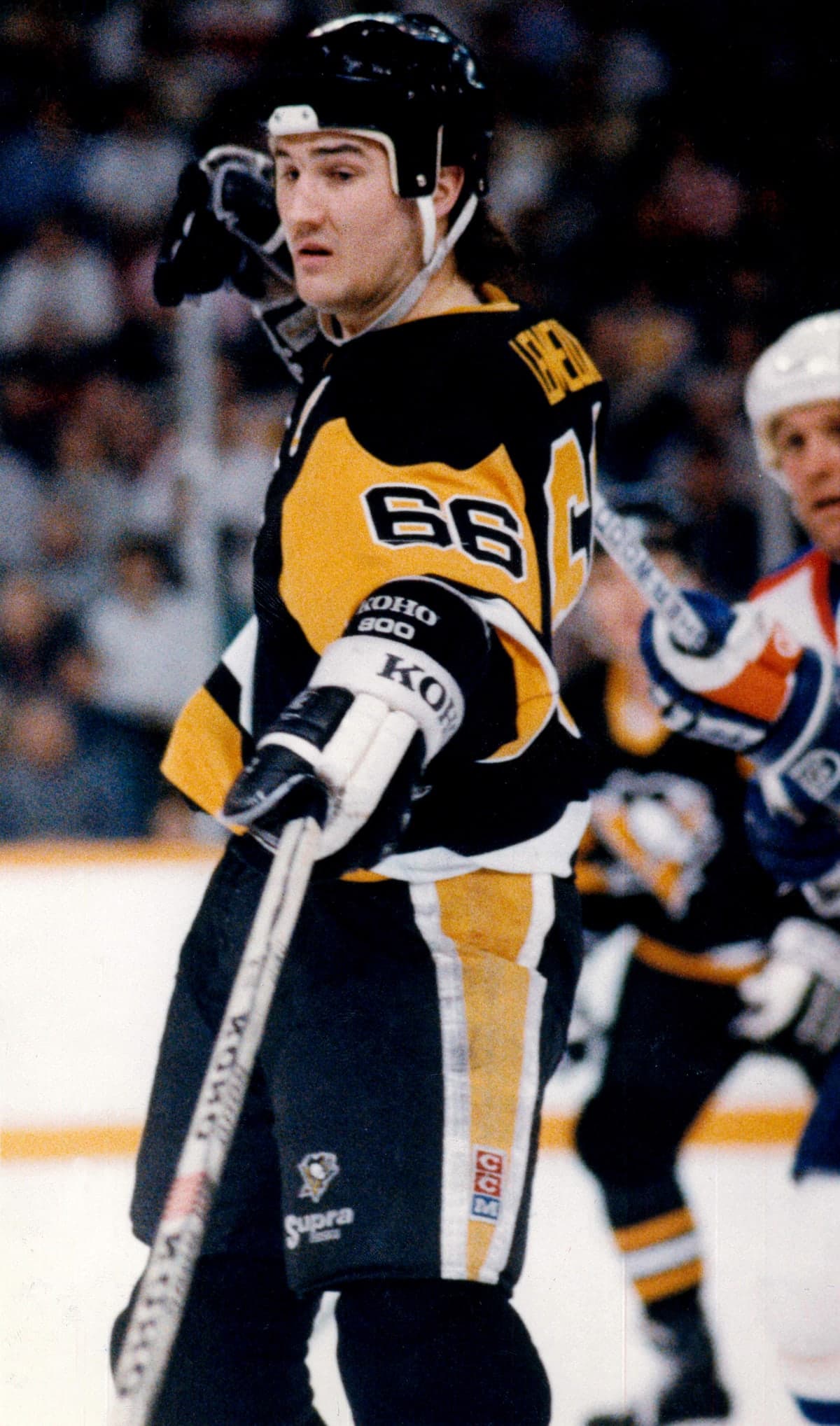 «Le Magnifique» n’a pris que quelques secondes pour faire bouger les cordages dans la LNH. À sa première présence sur la glace avec les Penguins, Lemieux a subtilisé la rondelle au défenseur des Bruins de Boston Raymond Bourque et a déjoué Pete Peeters avec son premier tir en carrière. Le Québécois qui avait 19 ans à l’époque a aussi fourni une mention d’aide dans ce match que son équipe a finalement perdu au compte de 4 à 3.