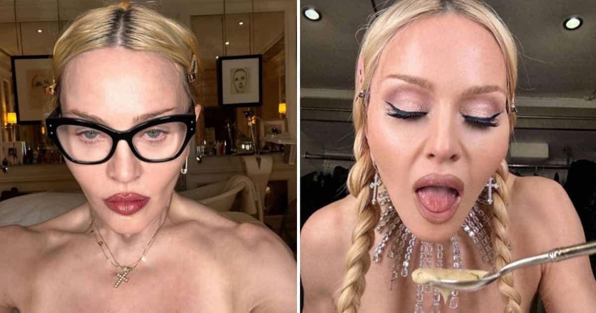 En effet, celle qui chantait Like A Virgin dans les années 80 a récemment posé uniquement vêtue d’un collier scintillant et d’une serviette de table alors qu’elle avalait un bol de soupe.