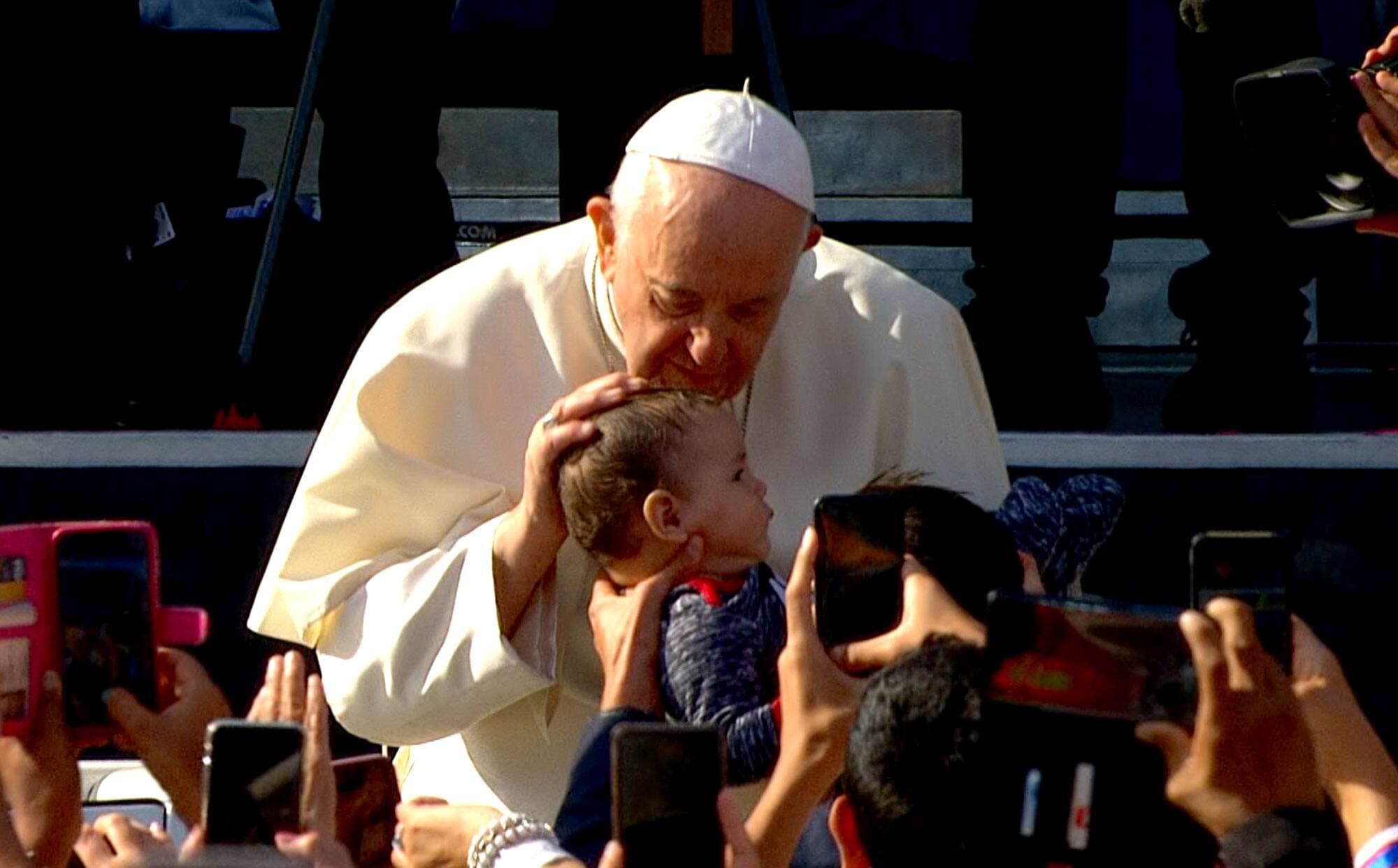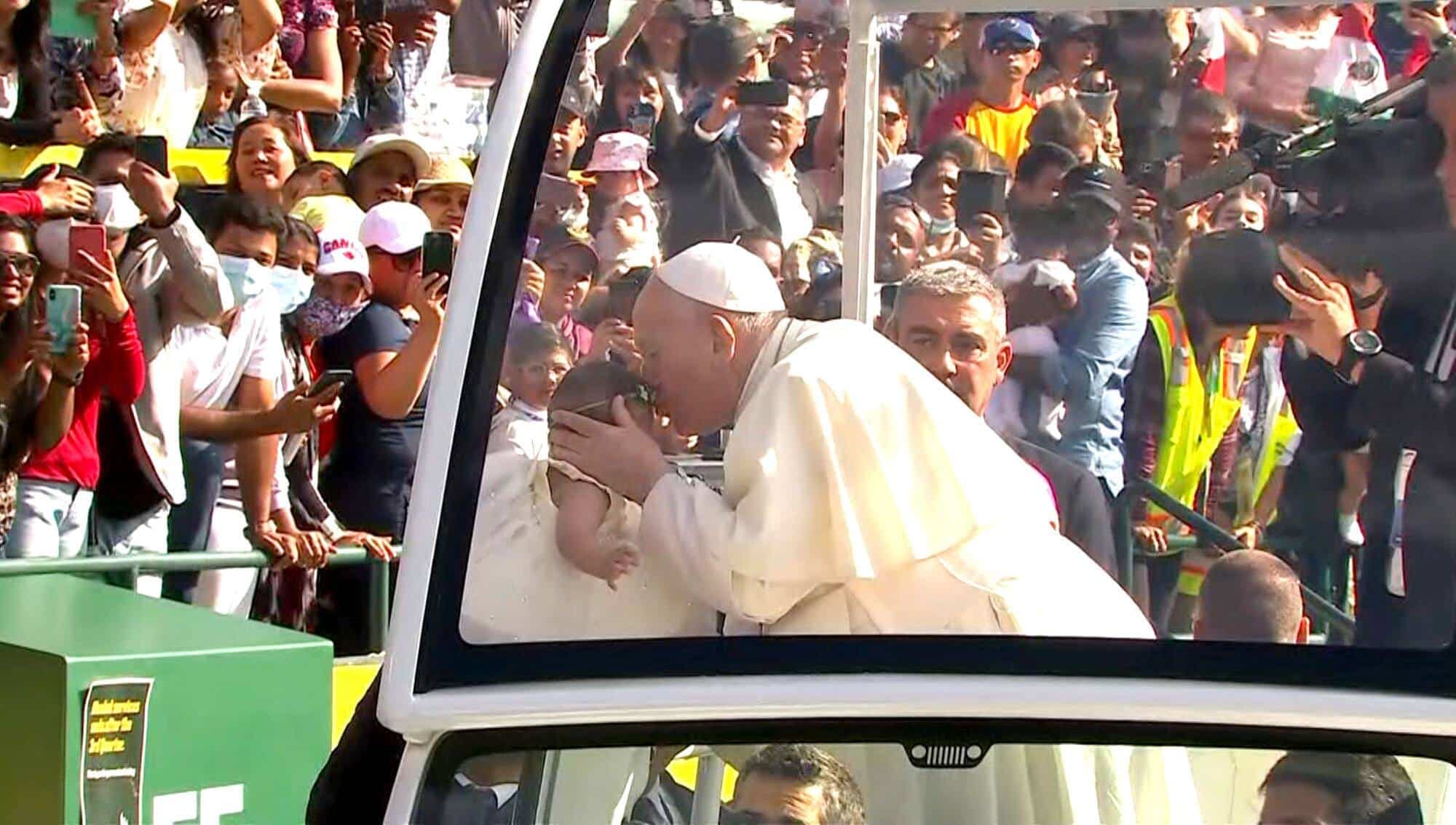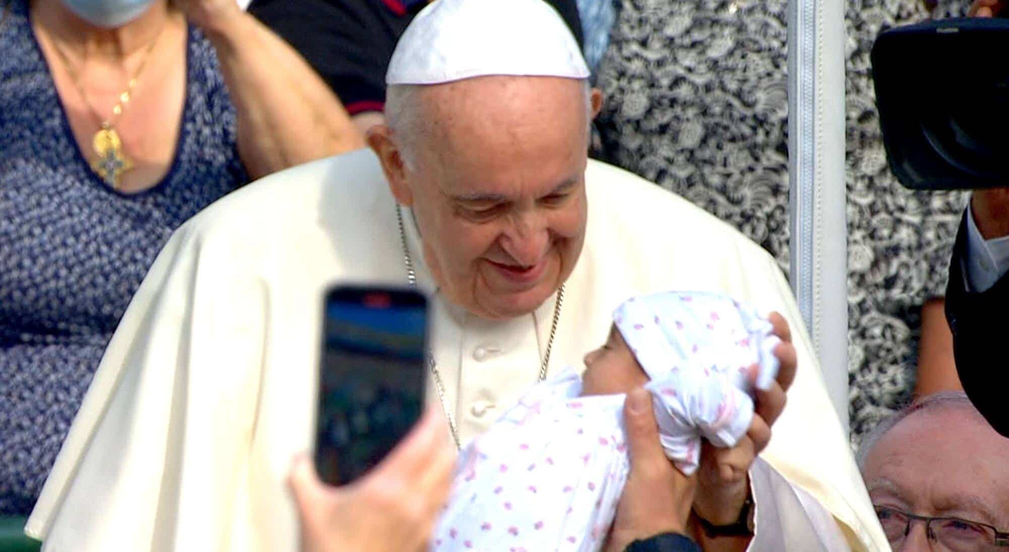 Malgré la COVID, le pape embrasse une dizaine de bébés
