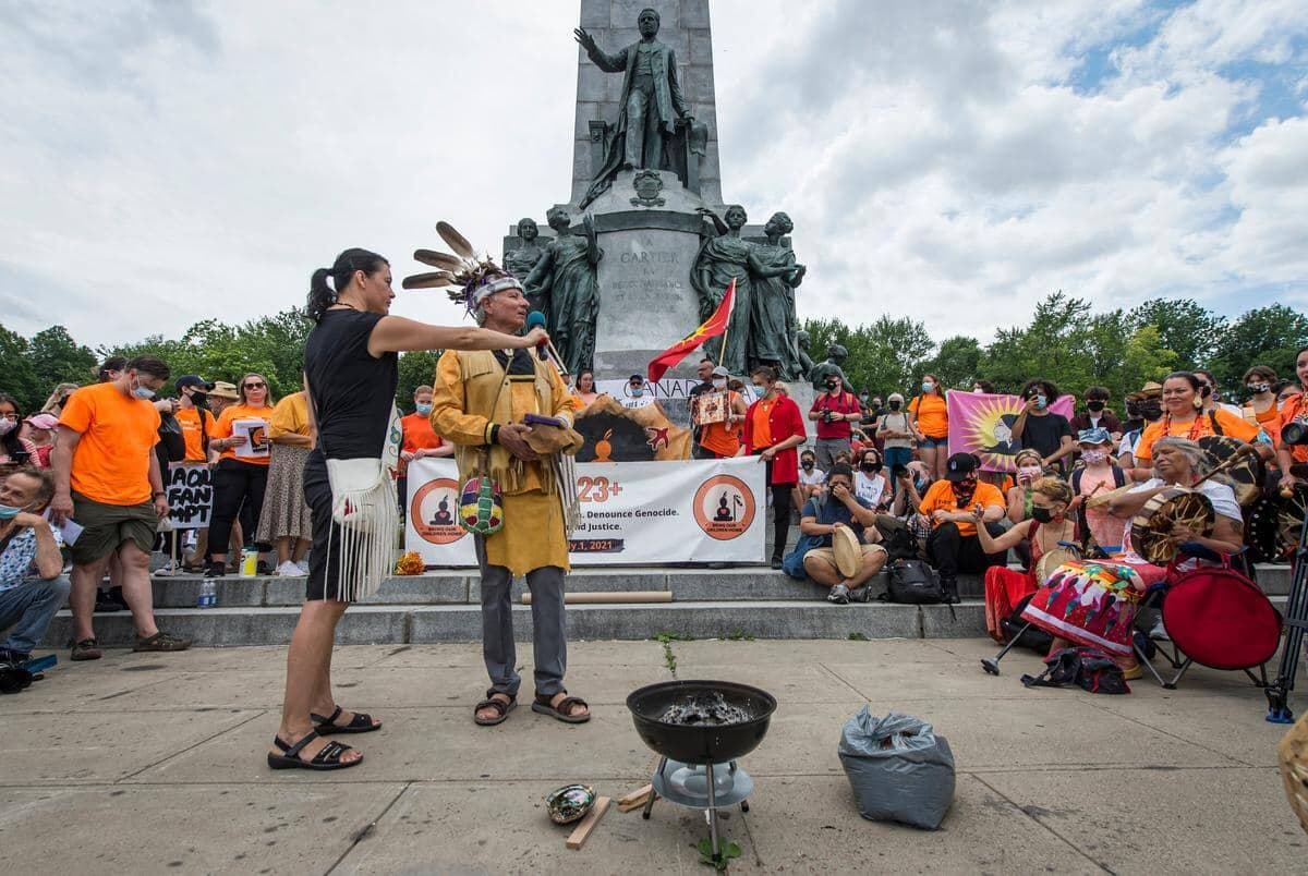 Alors que la découverte de tombes près d’anciens pensionnats autochtones de l’Ouest canadien continue d'ébranler le pays, des milliers de personnes se sont rassemblées à Montréal cet après-midi pour rendre hommage aux victimes et aux survivants de ces établissements.