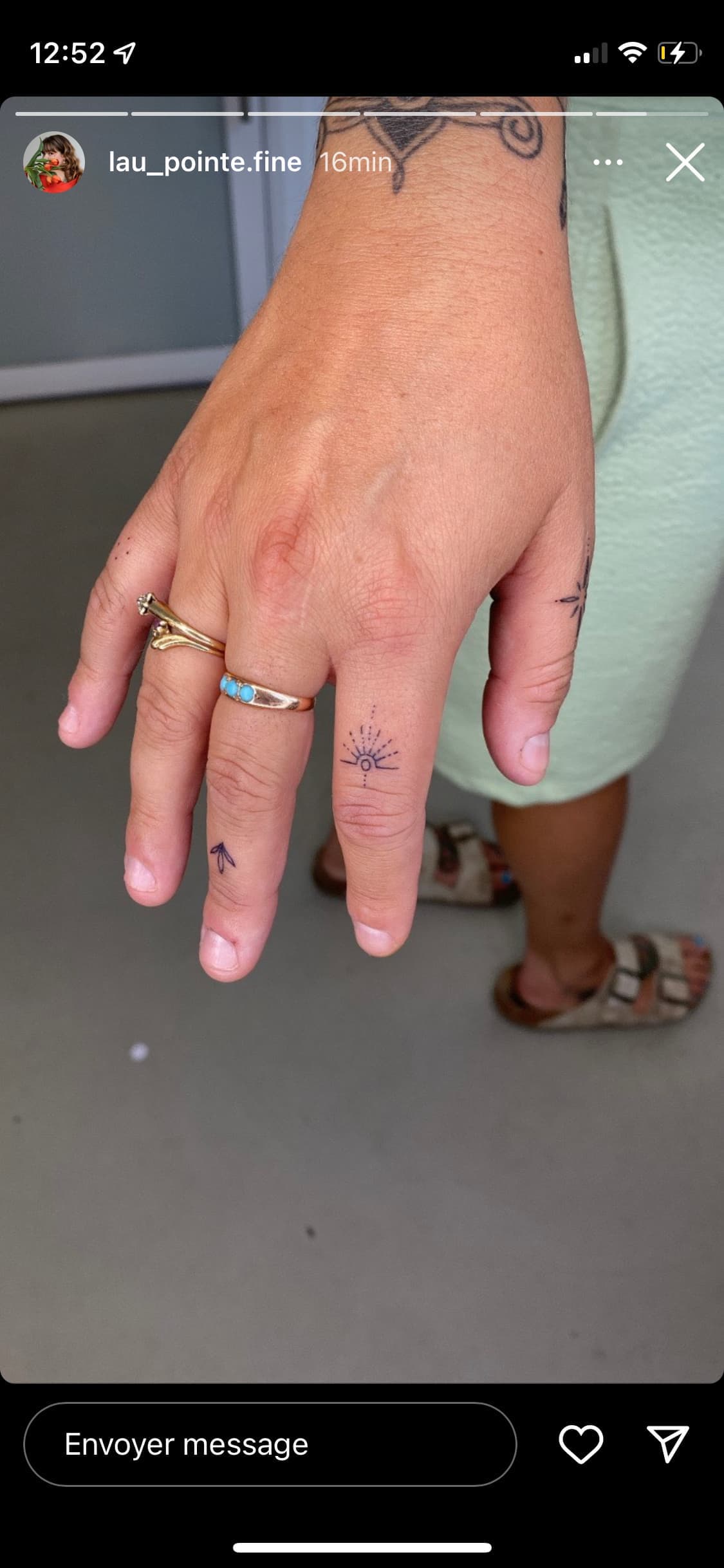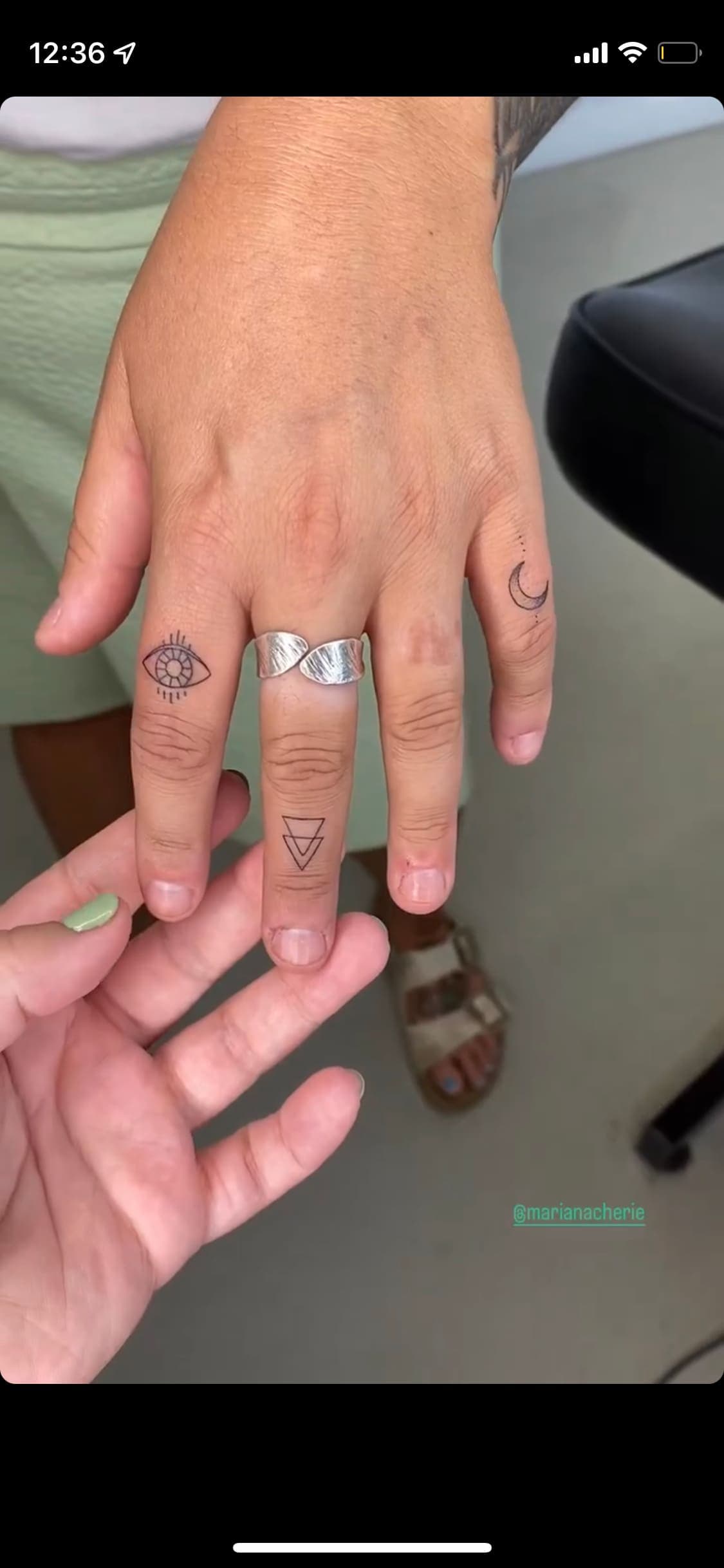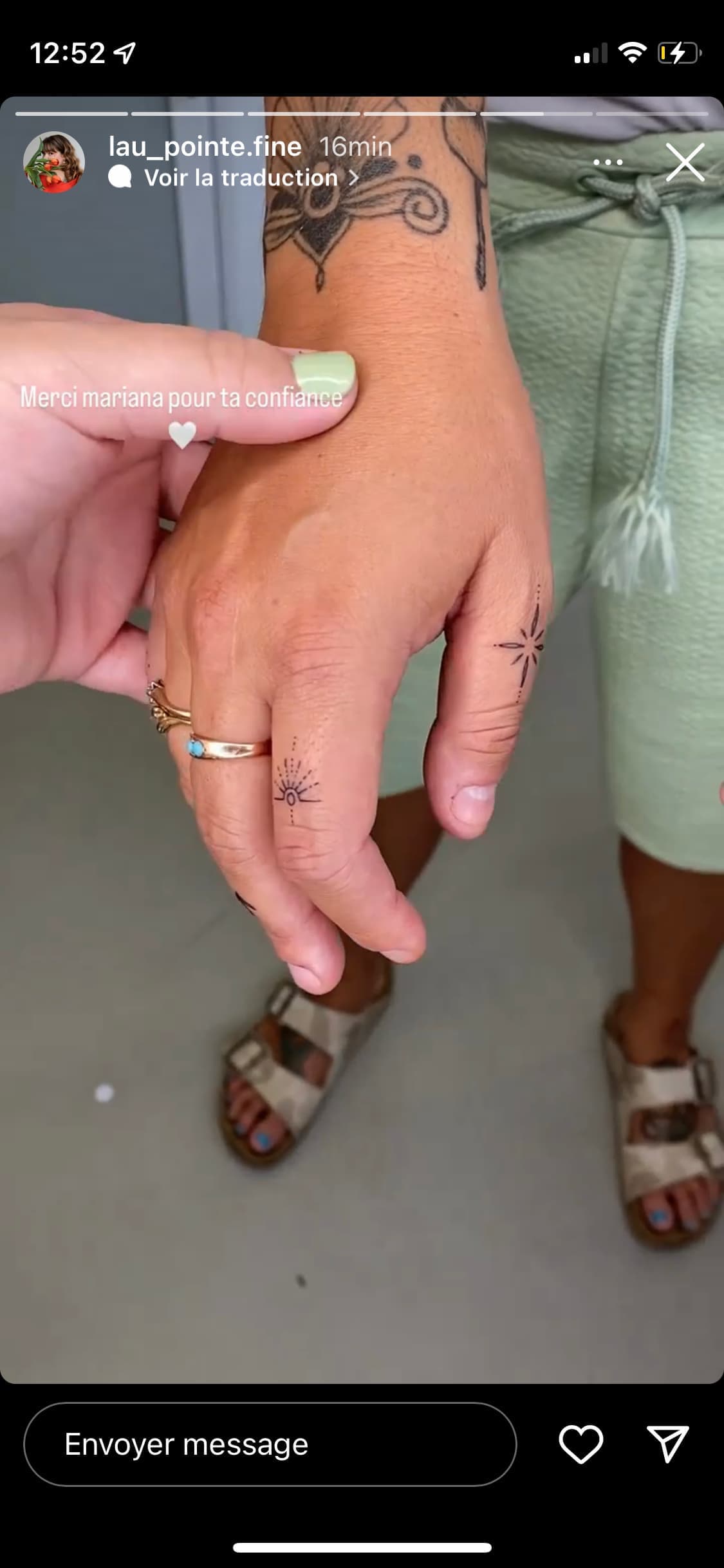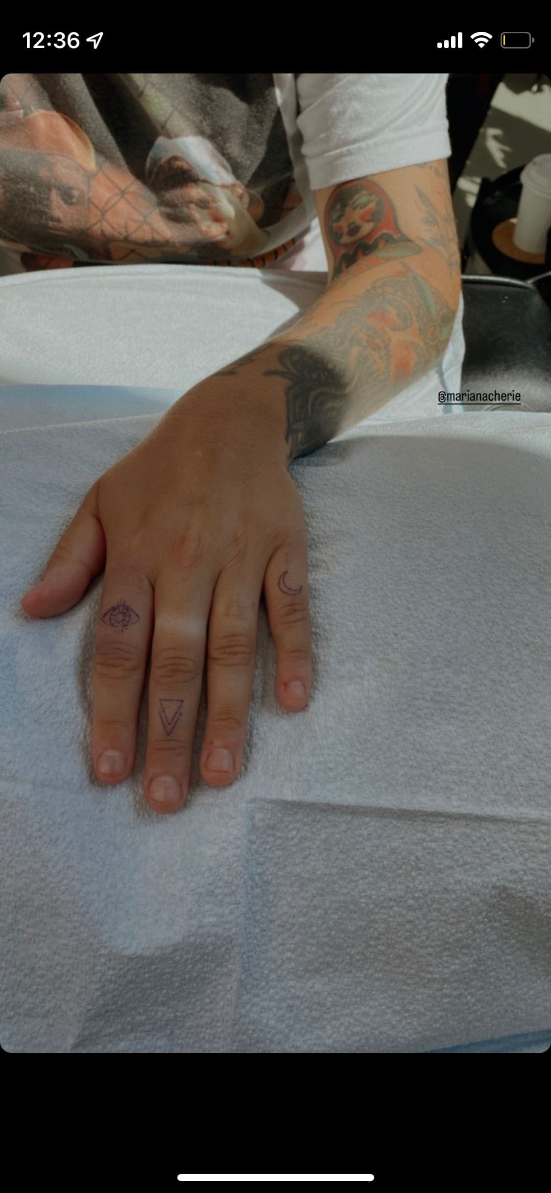 C'est l'artiste Laurie Bergeron qui s'est affairée à orner les doigts de l'humoriste de nouveaux tatouages, et elle a documenté le processus sur son compte Instagram.
