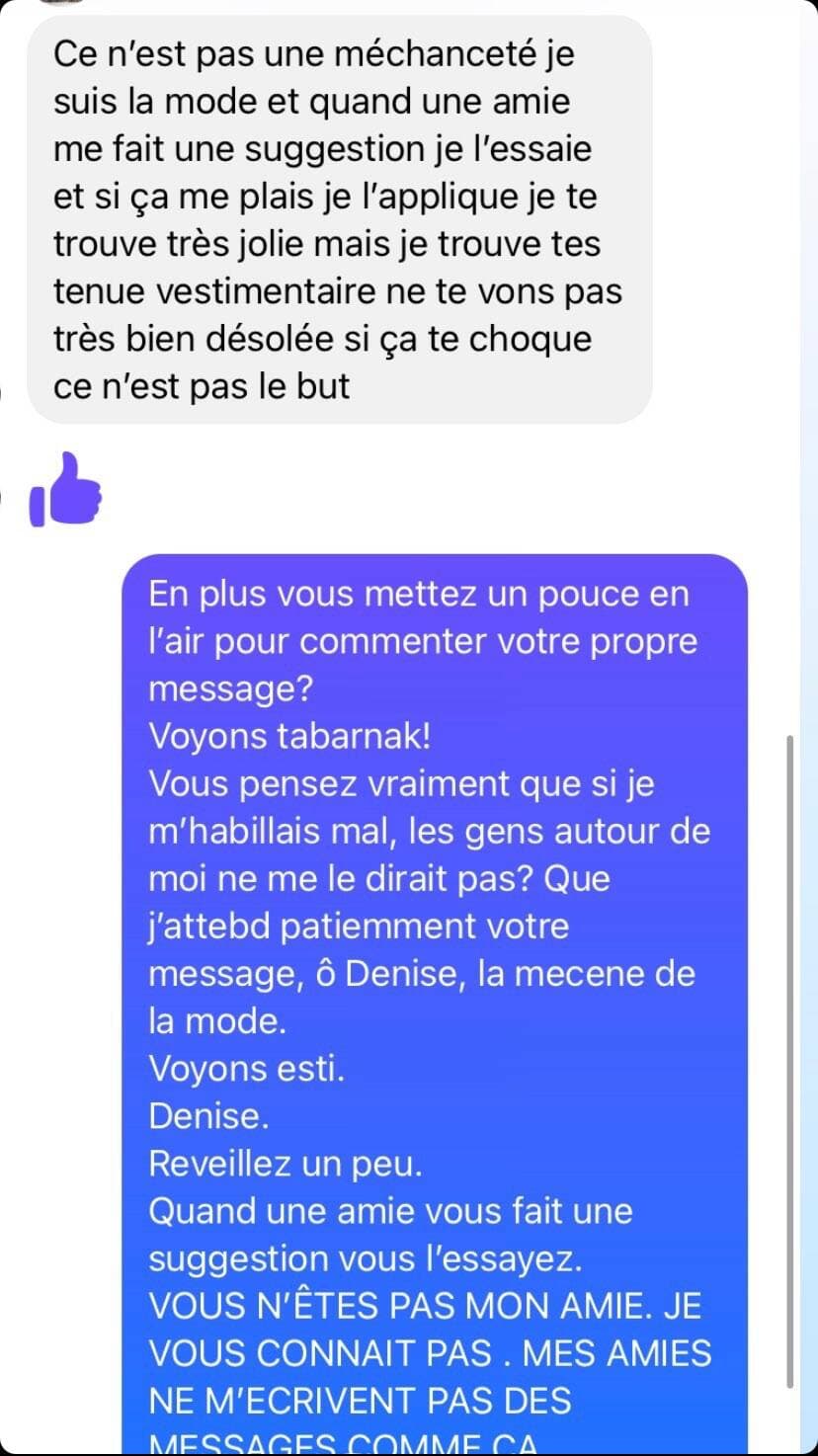 Parlez-en à Denise, qui lui a suggéré d'engager une styliste vestimentaire pour lui donner un coup de main pour son allure. Comme vous pouvez vous l'imaginer, l'humoriste et comédienne n'a pas du tout apprécié.