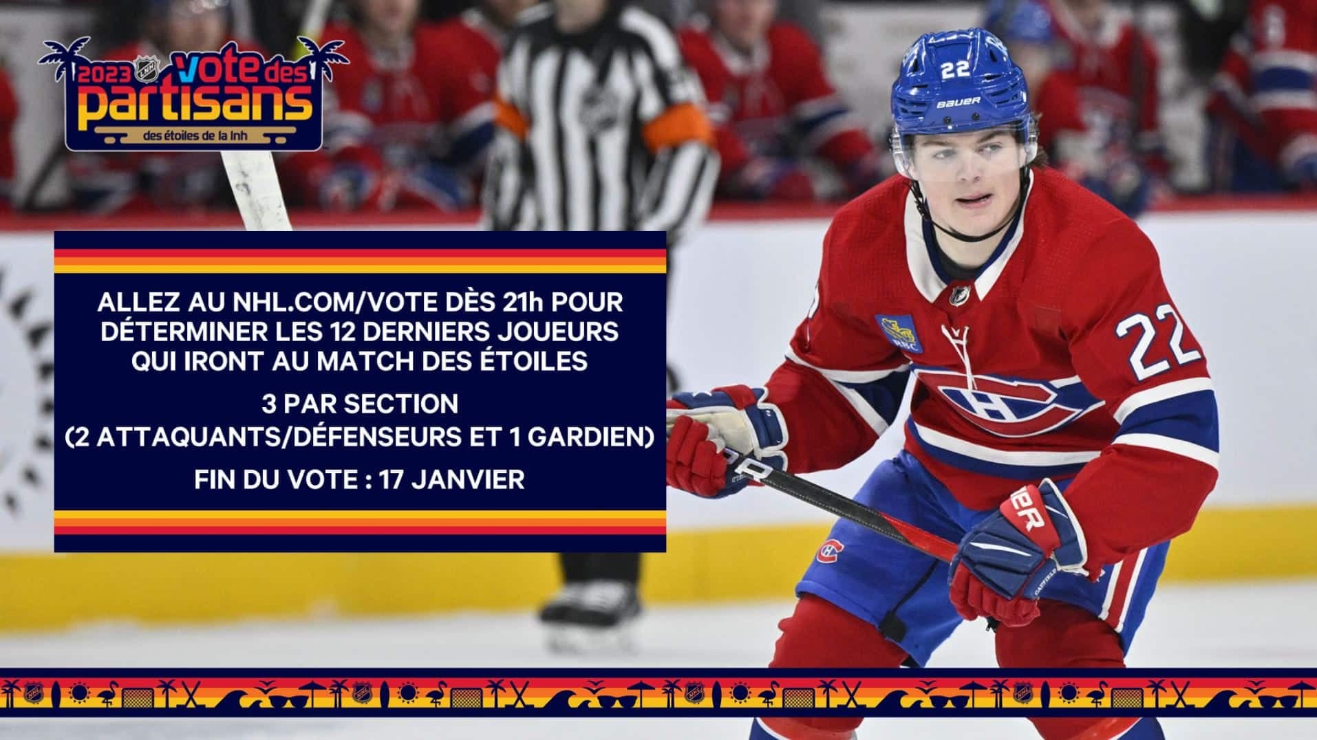 Le joueur qui représentera les Canadiens de Montréal sera Nick Suzuki, mais si vous voulez aussi voir Cole Caufield, ou un autre joueur en particulier, c'est le moment de voter ici.