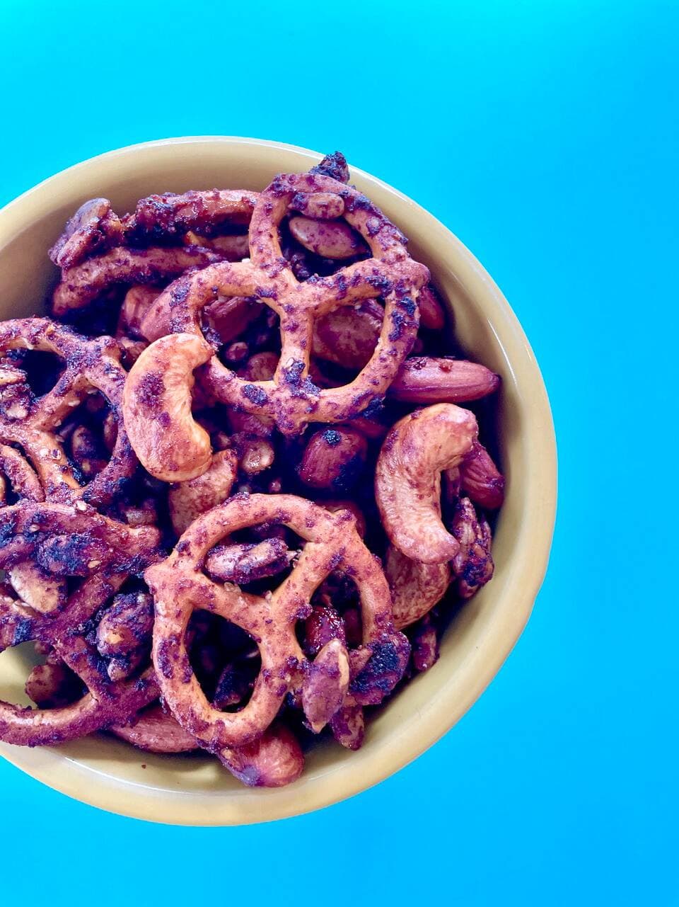 J’adore les mélanges croustillants à grignoter, mais j’avais le goût de vous offrir une version plus santé avec un petit je-ne-sais-quoi qui fait en sorte qu’on a toujours le goût d’en reprendre une bouchée. Une vraie grignotine au BBQ, quoi ! Après quelques tests, voici le Régal de feu, un mélange à grignoter parfait pour l’heure de l’apéritif ou pour apporter en collation lors de vos randonnées. Subtilement sucré et épicé à la fois, il représente une bonne source de protéines. S’il est aussi bon que vos croustilles préférées ? Oh que oui ! Il a un petit goût de revenez-y... encore et encore. Sucré à la purée de dattes et épicé à la sauce sriracha, on ajoute une légère touche de sirop d’érable pour y apporter une petite touche de craquant-collant.