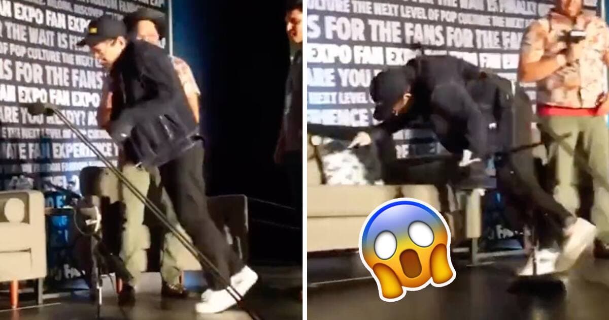 Michael J. Fox plante en pleine face dans un divan en montant sur une scène
