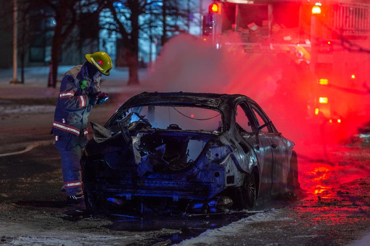 Montréal: un véhicule réduit en un tas de ferraille par un incendie à Anjou