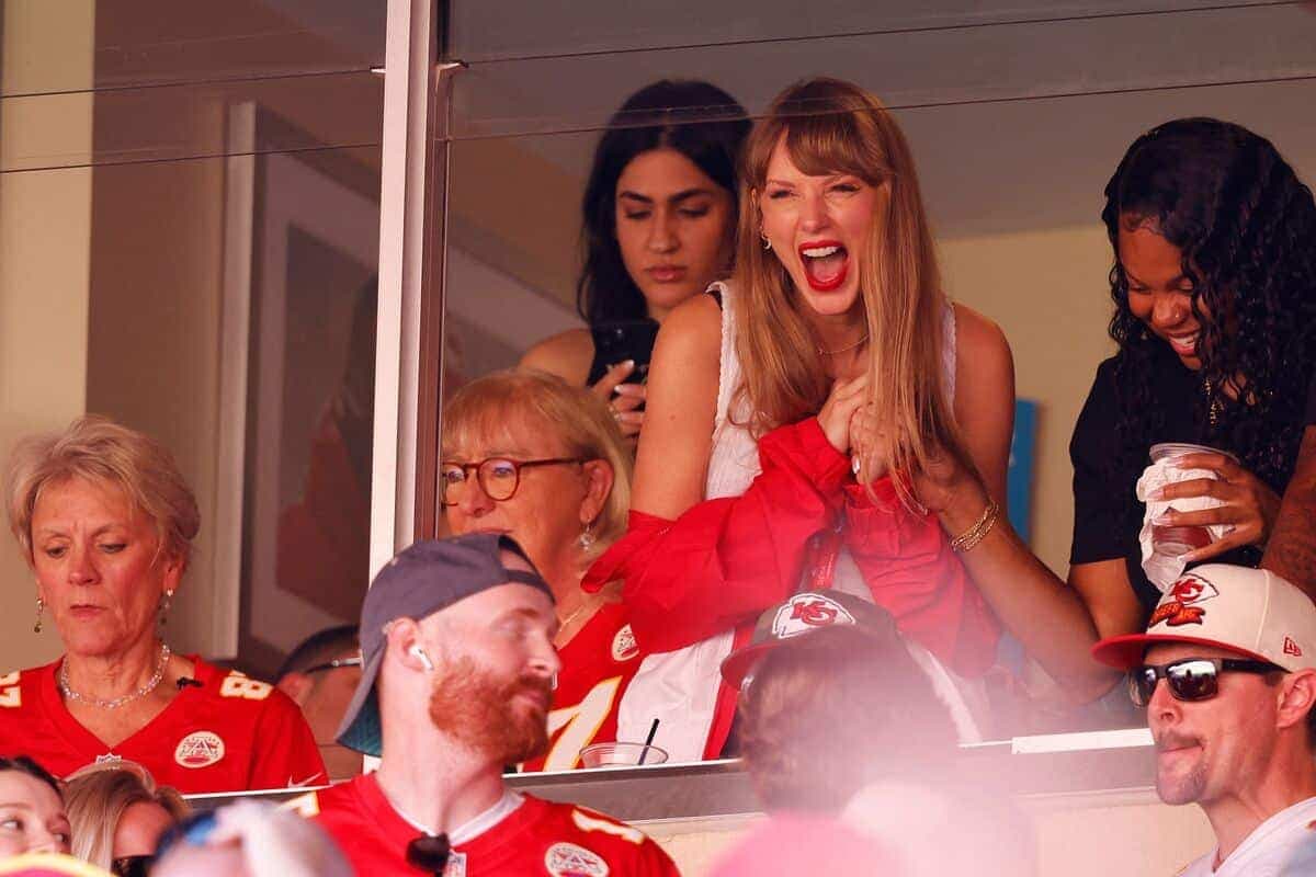 Swift n’a pas seulement assisté à la victoire des Chiefs, mais elle l’a fait dans une loge en compagnie notamment de la mère de Kelce, Donna. Vêtue de rouge et de blanc, portant même un manteau à l’effigie des champions du dernier Super Bowl, la gagnante de 12 trophées Grammy ne s’est pas gênée pour encourager la formation de Kansas City.