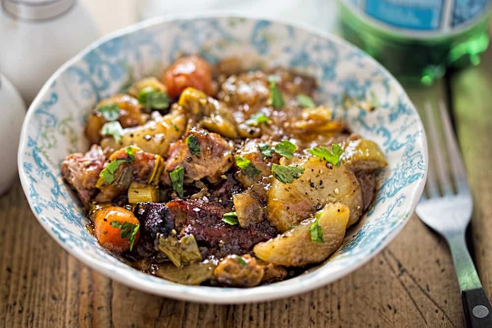 Cette réconfortante recette nous rappelle le Irish Stew. Les cubes de boeuf et les légumes, cuits lentement dans un bouillon à la bière rousse, seront tendres et savoureux.