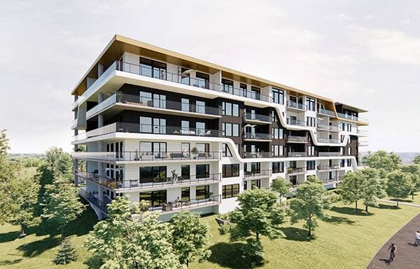 Le nouveau complexe de condos locatifs haut de gamme, en construction dans le quartier Lebourgneuf au coût de 165 M$, livrera ses premières unités en septembre 2022.
