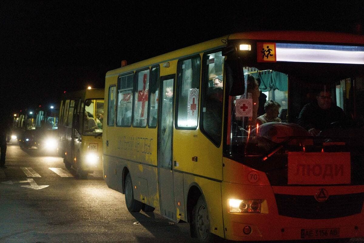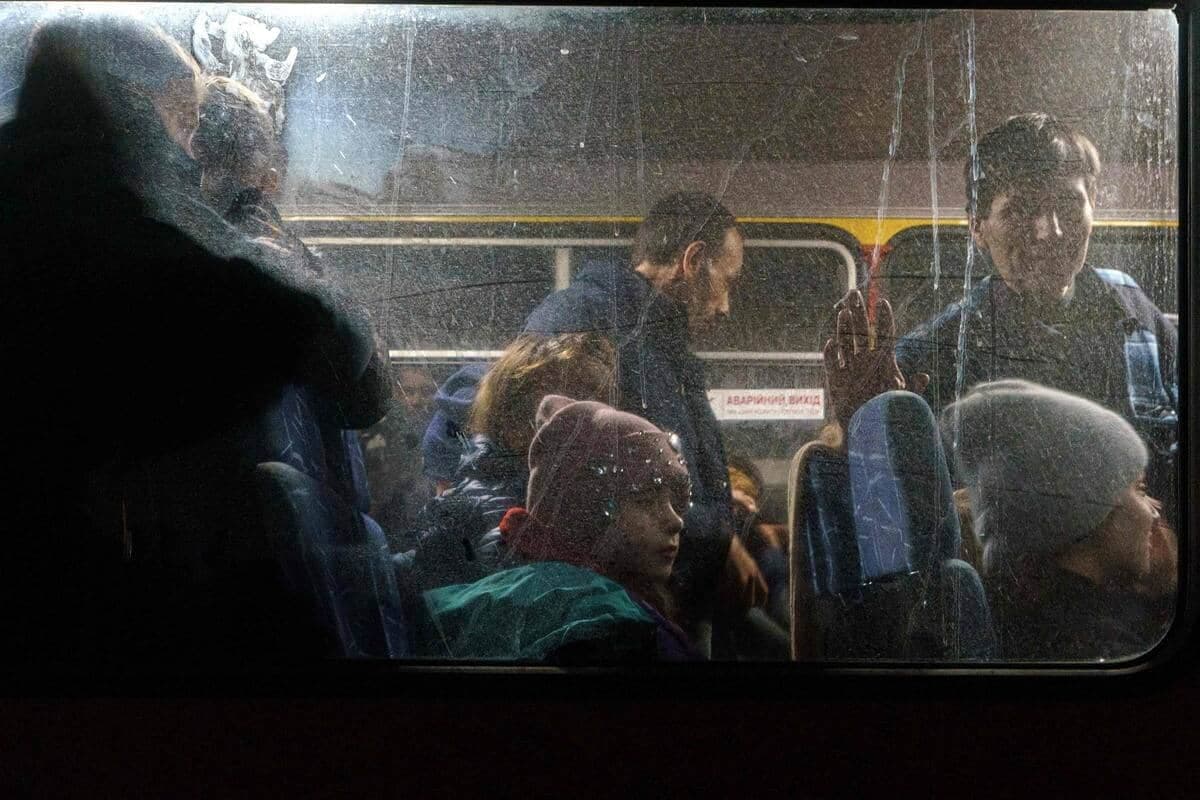 L'AFP a assisté à l'arrivée d'une trentaine de bus d'évacuation dans la ville de Zaporojie vendredi soir. Certains transportaient des personnes qui avaient fui Marioupol par leurs propres moyens puis avaient été emmenées en bus vers le territoire contrôlé par l'Ukraine.
