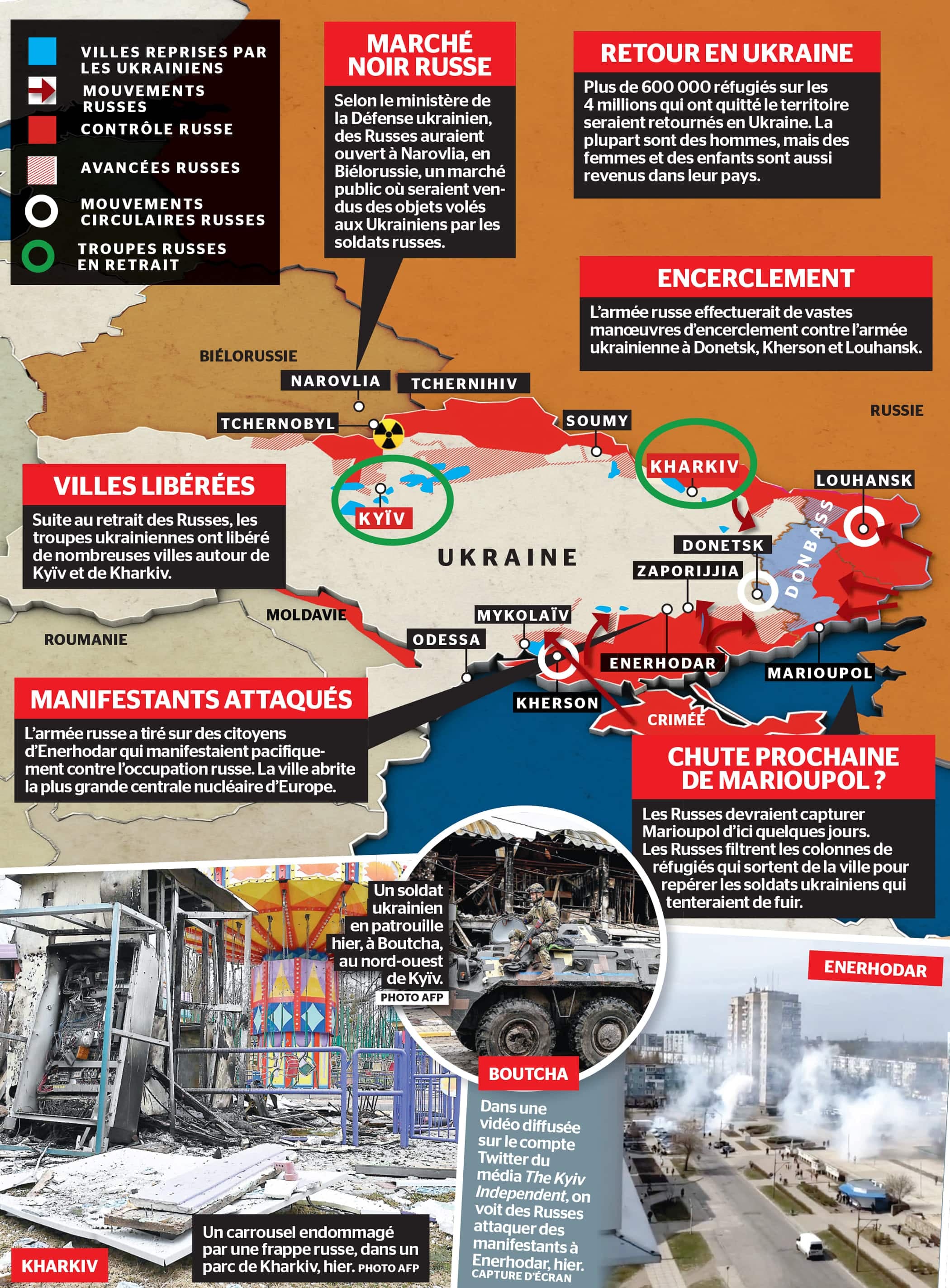 La Russie ne cherche plus pour le moment à conquérir toute l’Ukraine. Elle ne veut même pas capturer Kyïv ou Kharkiv. Son objectif est de tenter de consolider le territoire conquis au sud et d’occuper le Donbass.