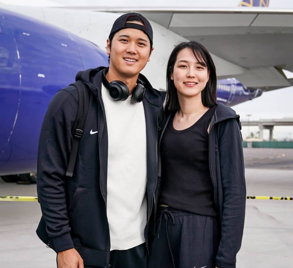Sur son compte Instagram, le Japonais a publié une story afin d’annoncer son périple vers Séoul, où son équipe amorcera officiellement la saison 2024 avec deux matchs contre les Padres de San Diego, les 20 et 21 mars. Sur le cliché, il se trouve aux côtés de son coéquipier et compatriote Yoshinobu Yamamoto et surtout de son épouse, que les observateurs ont rapidement identifiée : il s’agit de la joueuse de basketball Mamiko Tanaka, 27 ans.