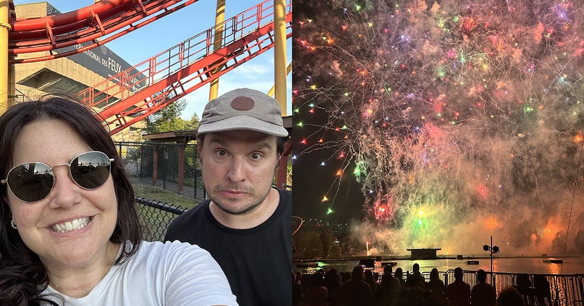 Nous nous sommes finalement décidés à bouger la semaine dernière, alors que nous avions reçu des billets pour aller assister à l’International des Feux Loto-Québec en direct de La Ronde. Ça nous aura pris 7 ans à traverser la moitié du fleuve Saint-Laurent.
