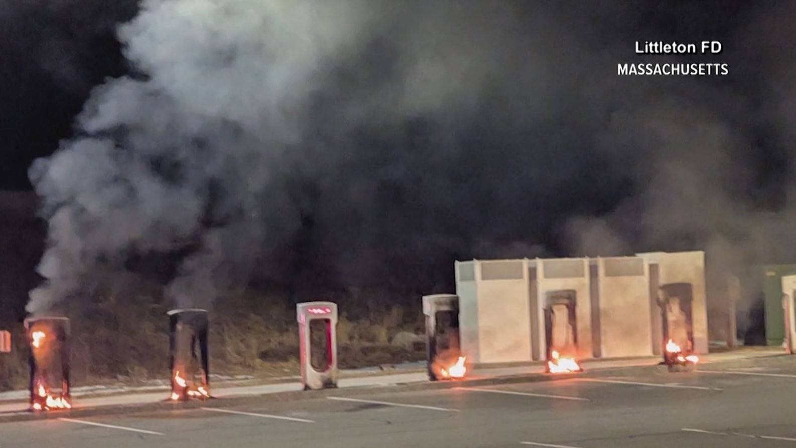 Quelques jours plus tôt, le 3 mars, sept stations de recharge de Tesla ont été mises en feu à Boston, peu après 1h du matin.