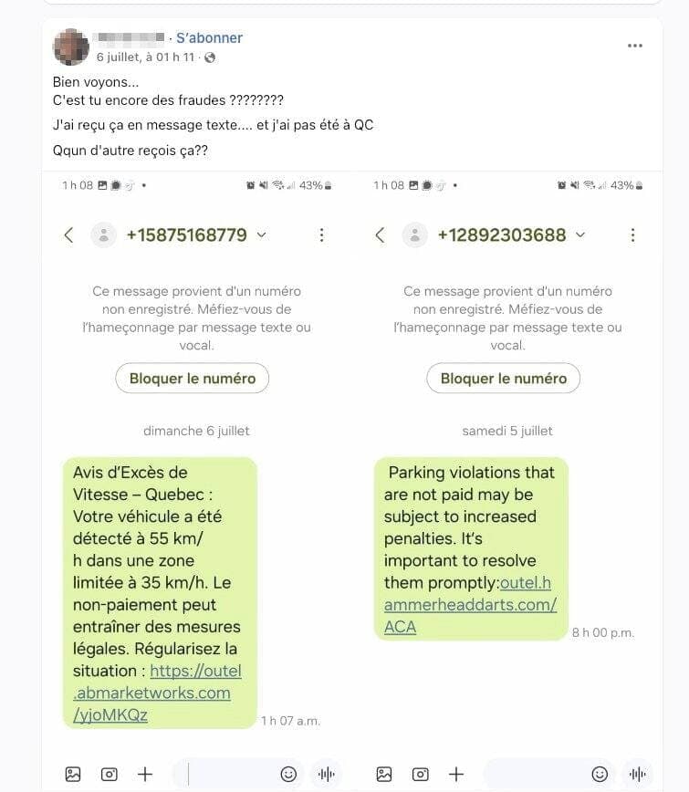 [PHOTOS] «Ce sont des lâches!»: vague de faux textos imitant des policiers, des livreurs et même le gouvernement
