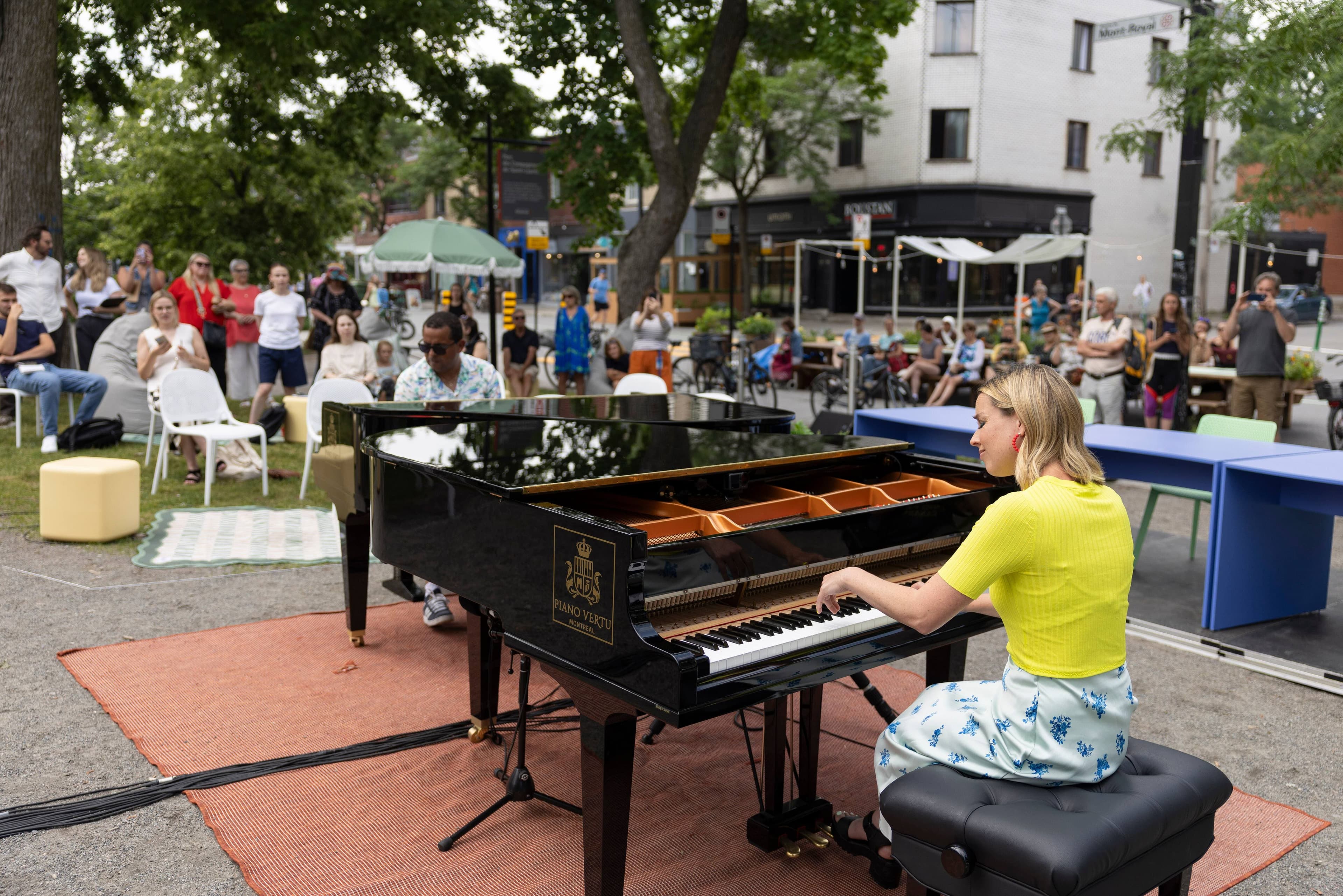 L’équipe a pu se rendre, sous une journée bien ensoleillée, à une partie du tournage du nouveau concept Piano public, qui sera en ondes à Télé-Québec cet automne. Une compétition où les meilleurs pianistes du Québec s’affrontent dans plusieurs défis différents.