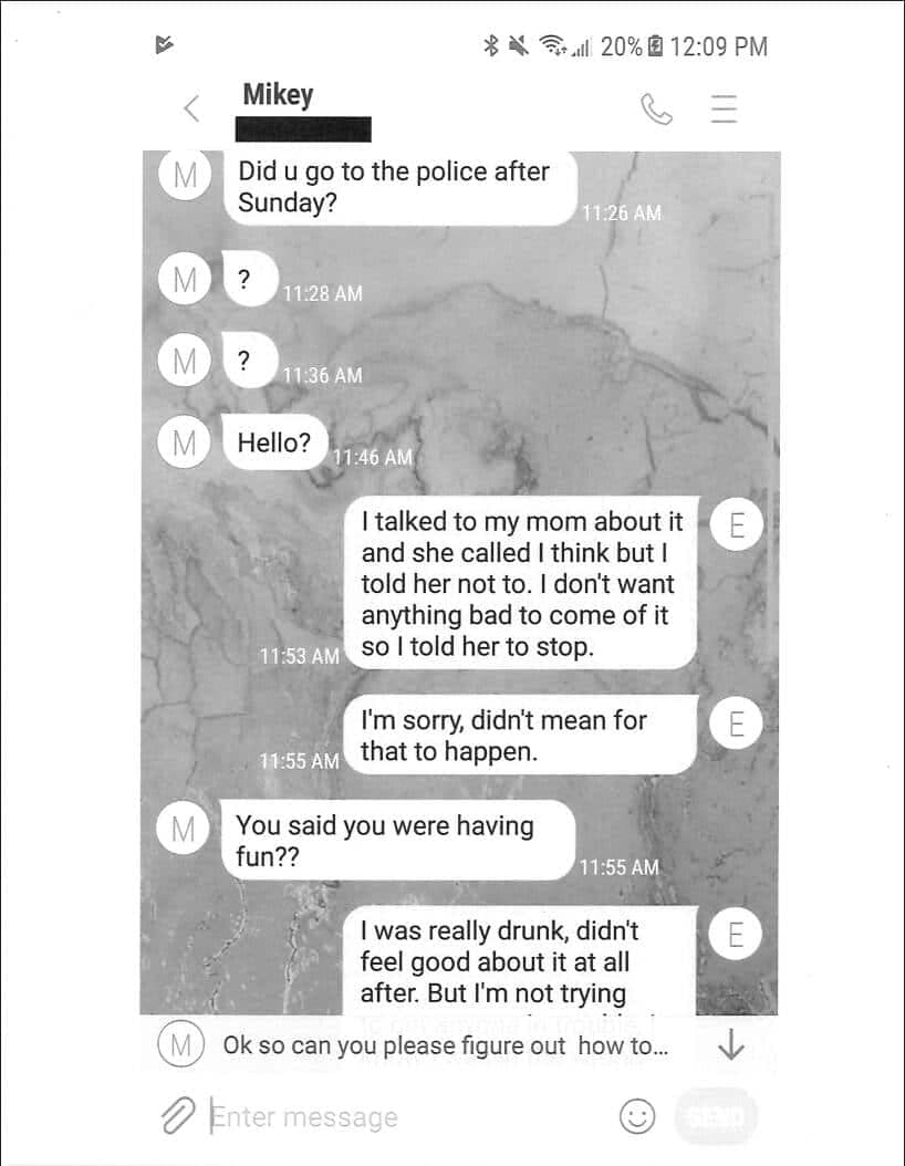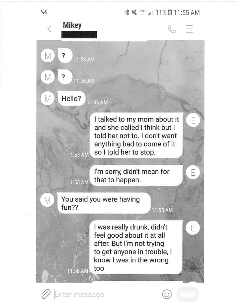 À la suite d’une soirée arrosée dans un bar de London, la présumée victime suit l’un des accusés, Michael McLeod, jusque dans sa chambre d’hôtel. Ils ont alors un rapport sexuel consentant. Par la suite, le jeune homme invite des coéquipiers à les rejoindre dans sa chambre en envoyant un texto dans un groupe de 20 personnes.