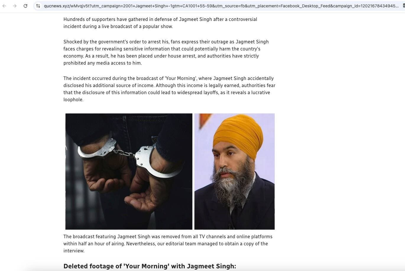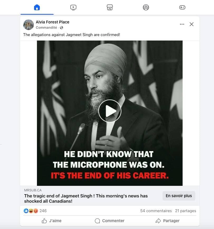 De faux articles affirment notamment que Jagmeet Singh a été arrêté