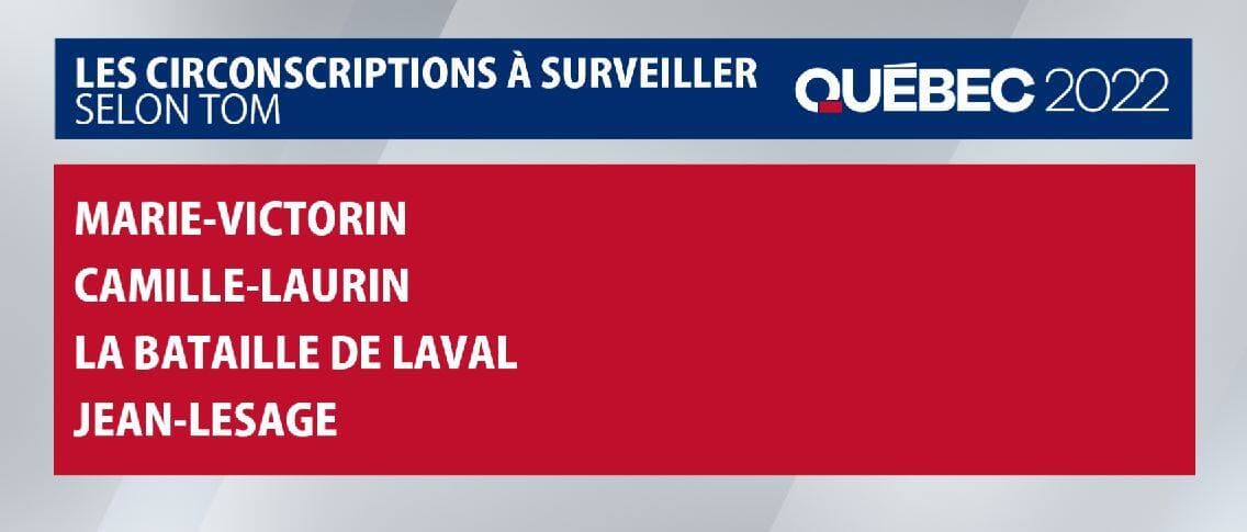 L’équipe de TVA Nouvelles surveillera attentivement les résultats dans les circonscriptions des trois chefs qui sont en danger d’être défaits, soit Éric Duhaime, Dominique Anglade et Paul-St-Pierre Plamondon.