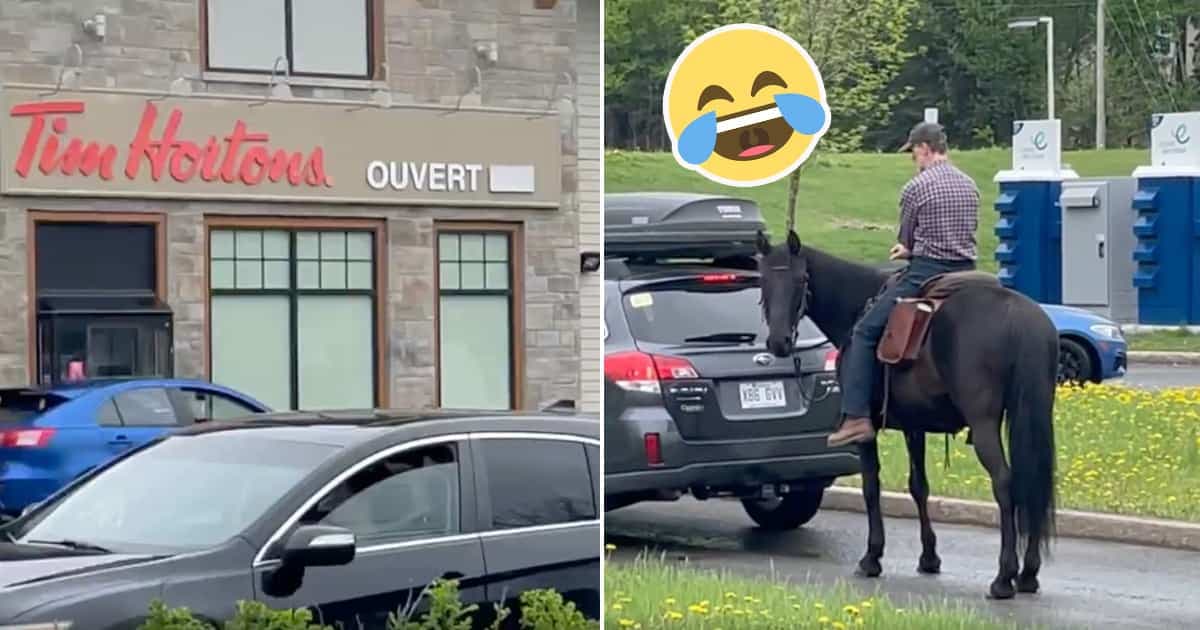 Quelqu’un a commandé son café à cheval au Tim Hortons de Stoneham