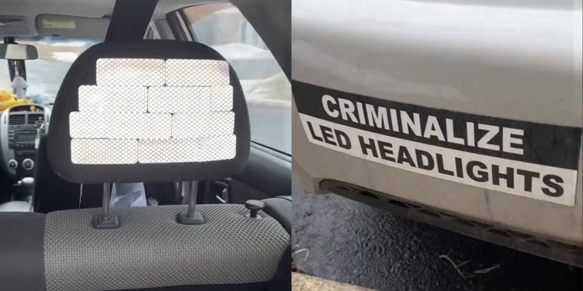 Il a mis du ruban réflecteur sur le derrière des sièges de sa Kia.