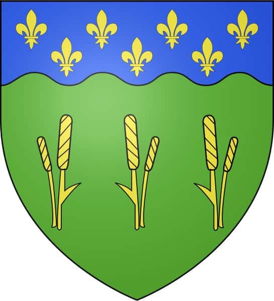 Kamouraska «De sinople à 3 roseaux tigés feuilles d’or et fruités de sable au chef ondé cousu d’azur semé de fleurs de lys d’or.»