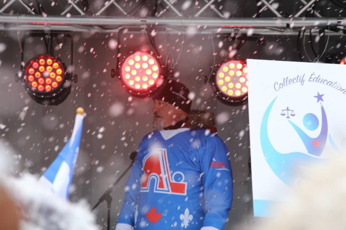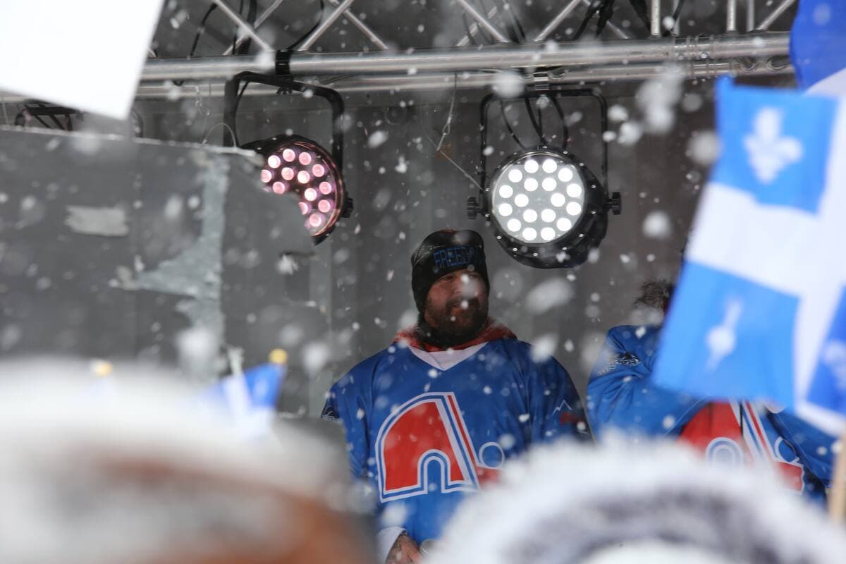 L’une des figures de proue du convoi de la liberté au Québec, Bernard «Rambo» Gauthier a pris la parole, samedi, devant les manifestants de Québec.