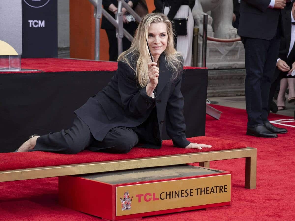 L’actrice Michelle Pfeiffer a fait tourner les têtes vendredi en déposant ses empreintes – de mains et de pieds – dans le ciment du célèbre Chinese Theatre de Hollywood vendredi passé.