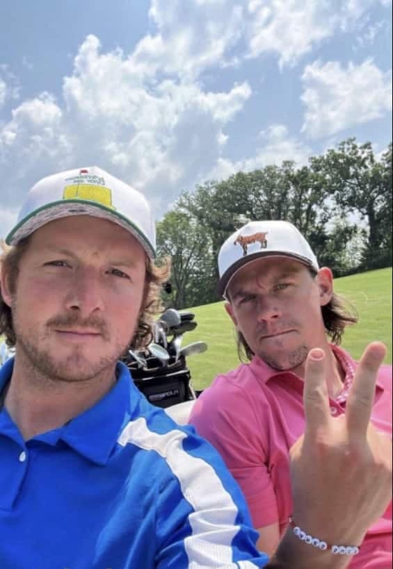 Les deux hommes ont pris la pose à bord d’une voiturette de golf sur un terrain qui n’a pas été identifié. C’est surtout le bracelet que porte Haula qui a fait jaser, puisqu’on y lit Canes Suck.
