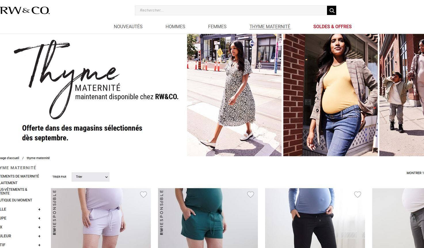 Les vêtements de Thyme Maternité effectuent maintenant un retour en étant offerts, dès le lundi 15 août, sur le site internet de RW&CO. La nouvelle marque sera aussi offerte dans les 77 boutiques boutique RW&CO à partir de l’automne.