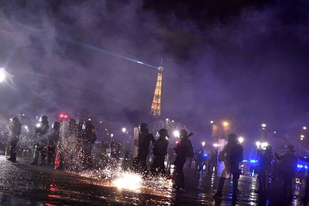 Plusieurs centaines de personnes ont affronté à coups de bouteilles et de feux d’artifice la police, qui a répliqué à coup de gaz lacrymogène, en tentant d’évacuer la place sous la pluie. On a dénombré 61 interpellations vers 21H30 (20H30 GMT), selon la préfecture de police.