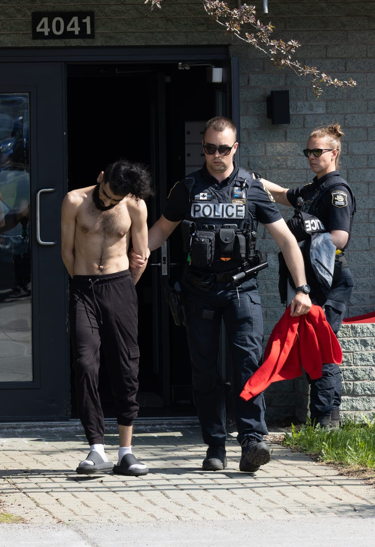Des membres du groupe tactique d'intervention (GTI) ont passé quelques heures à surveiller un immeuble du secteur Duberger, à Québec, avant d’arrêter un homme et une femme en fin de journée, jeudi.