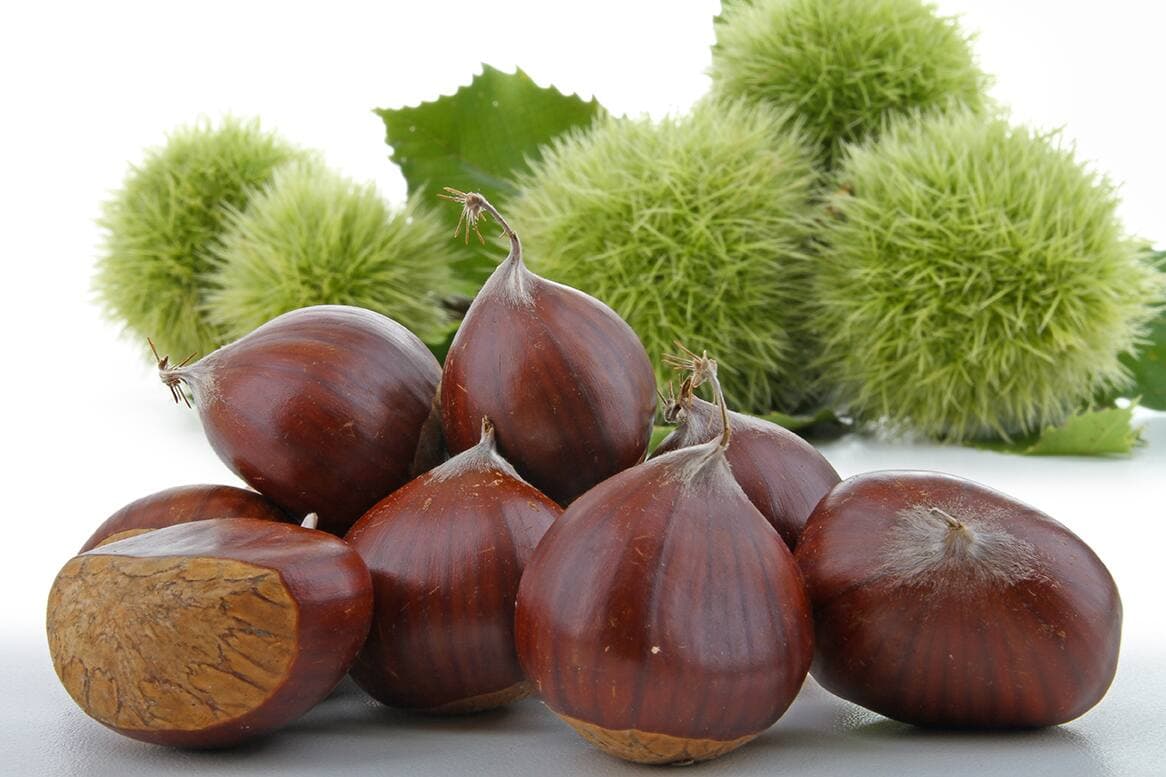 Châtaignes Les châtaignes sont des fruits à coque comestible, de forme arrondie et de couleur brune, avec une chair blanche et farineuse. Elles sont souvent grillées ou bouillies avant d'être consommées et sont populaires dans les plats d'automne et d'hiver. Quand une châtaigne a une belle forme et qu’elle pousse seule dans sa bogue, c’est un marron.