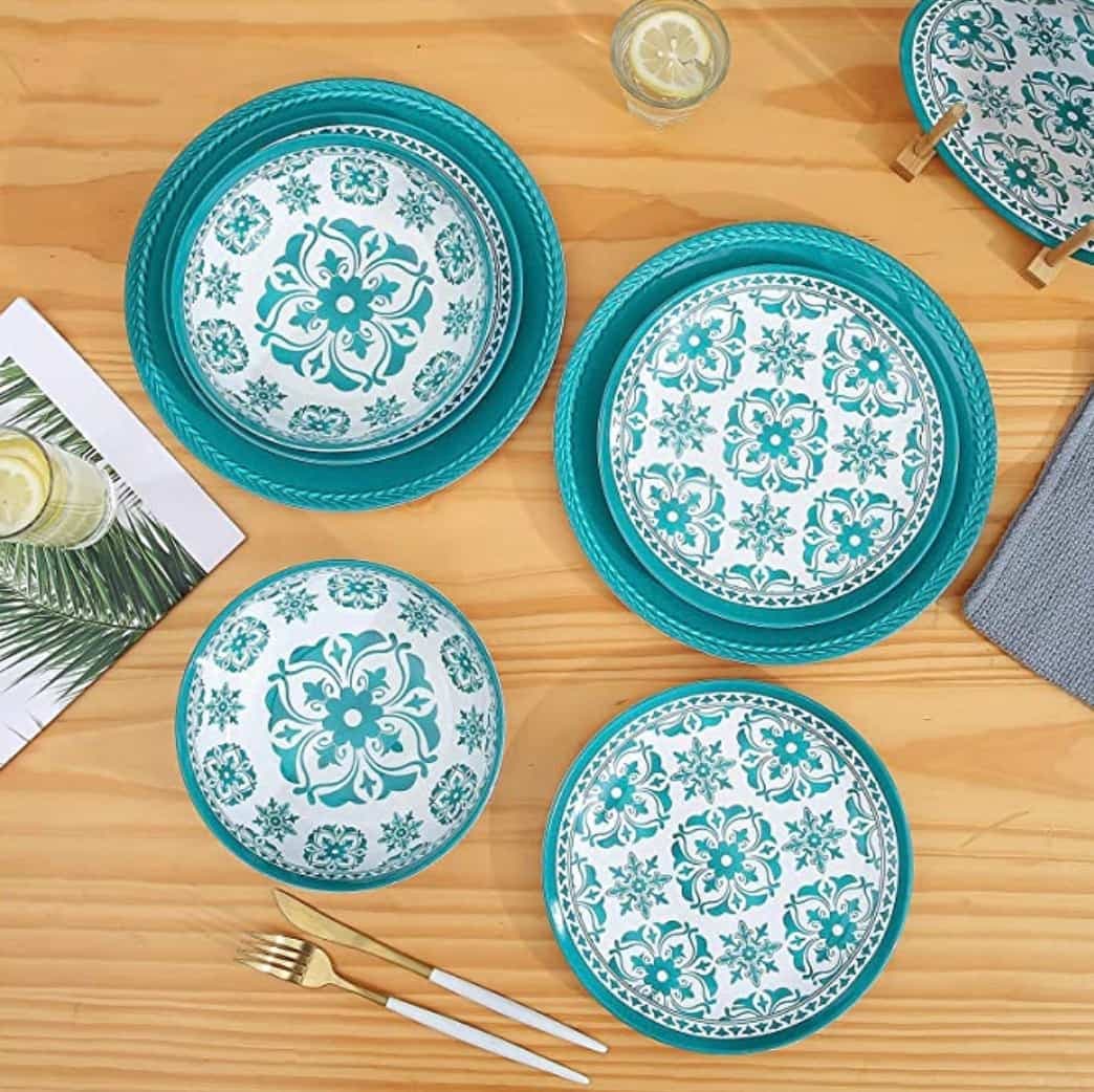 4. Service de table en mélamine pour 4 personnes (12 assiettes et bols) chez Amazon - 62,45$