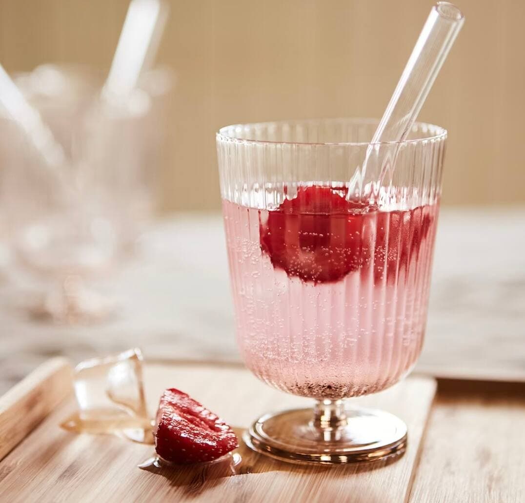 Ce verre à la touche rose clair est délicat et idéal pour un cocktail dans les mêmes teintes.