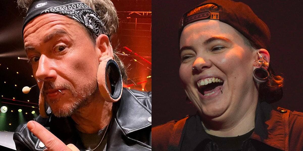 Avec le manteau de cuire, le bandana et même les stretch dans les oreilles, l’humoriste de 57 a vraiment réussi son coup.