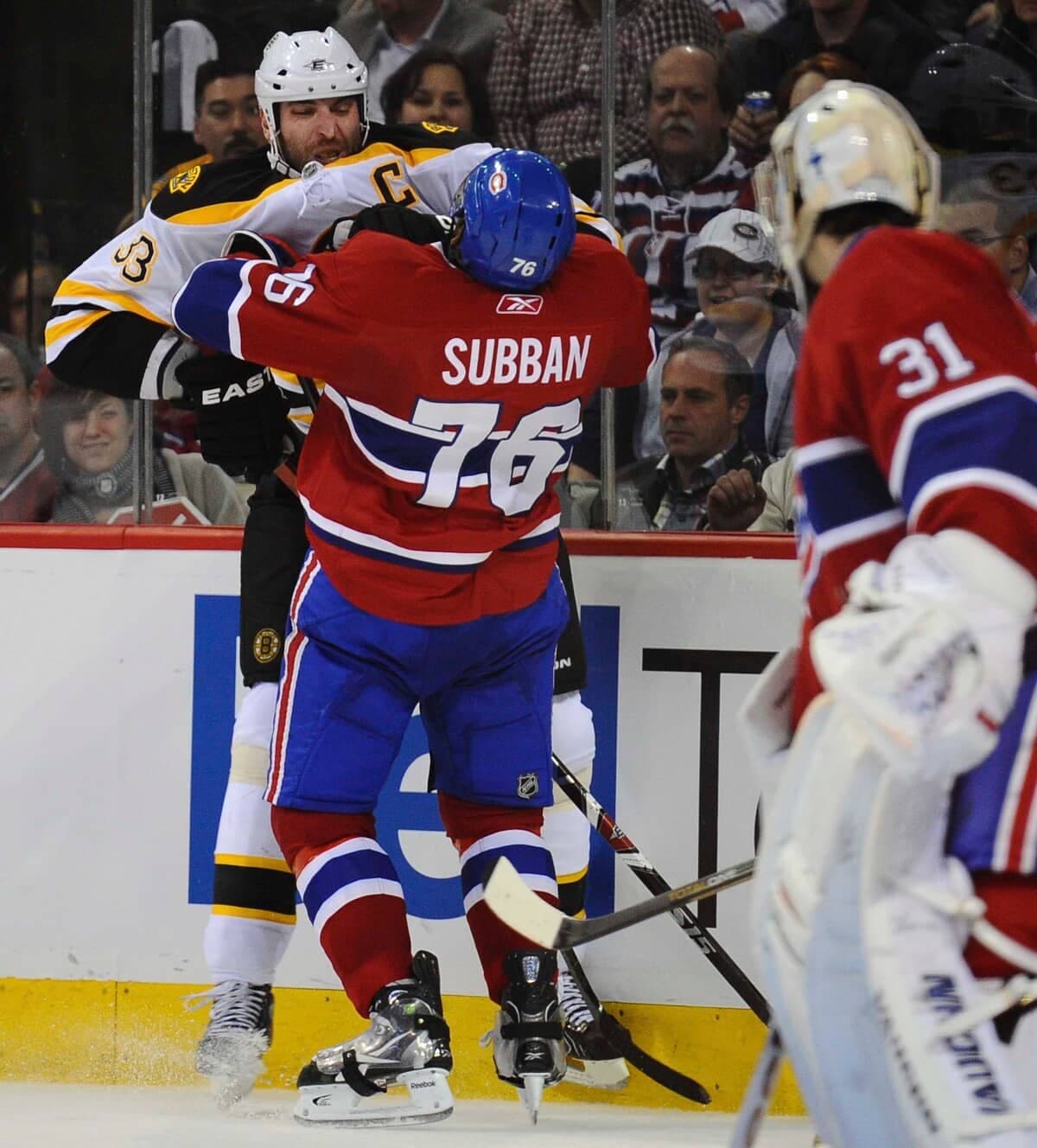 Même plus de 11 ans après les événements traumatisants de cette soirée de fin d’hiver au Centre Bell, certains amateurs sont encore marqués par la mise en échec de Chara à l’endroit de Max Pacioretty à proximité du banc du Tricolore. En deuxième période d’un gain de 4 à 1 du Bleu-Blanc-Rouge, le numéro 33 des visiteurs a littéralement écrasé la tête de l’attaquant sur une barrière située près du banc des joueurs; la victime a quitté la glace sur une civière, ayant subi une commotion cérébrale et des fractures à des vertèbres du cou.