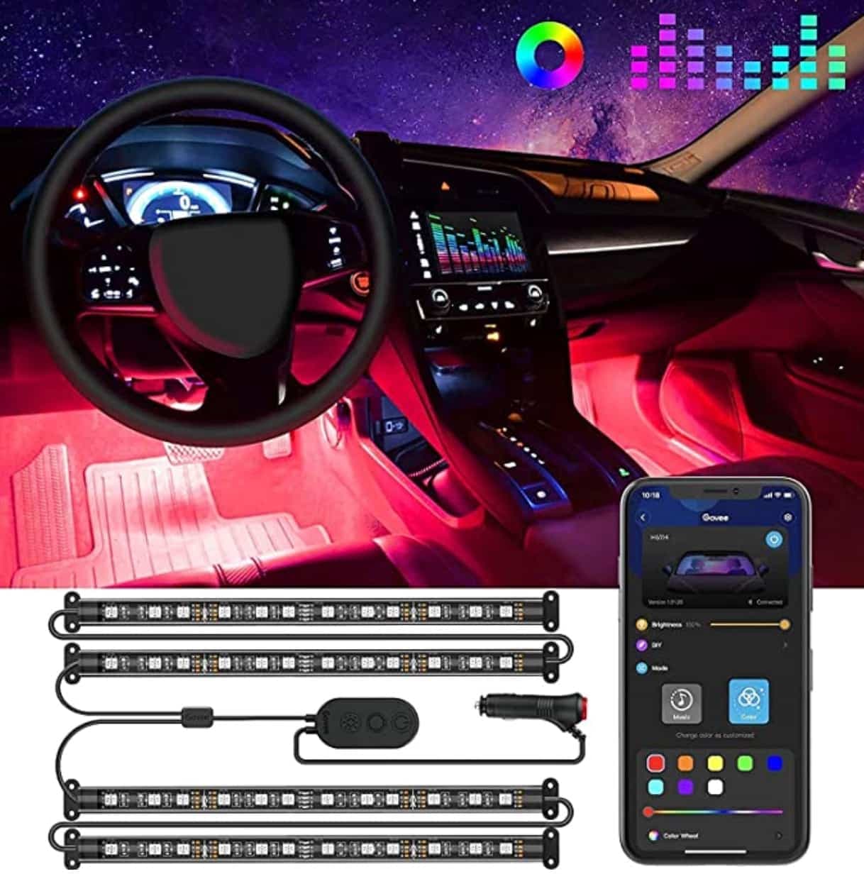 12. Lumières d'intérieur pour voiture intelligentes à DEL contrôlées par une application, 26,99$