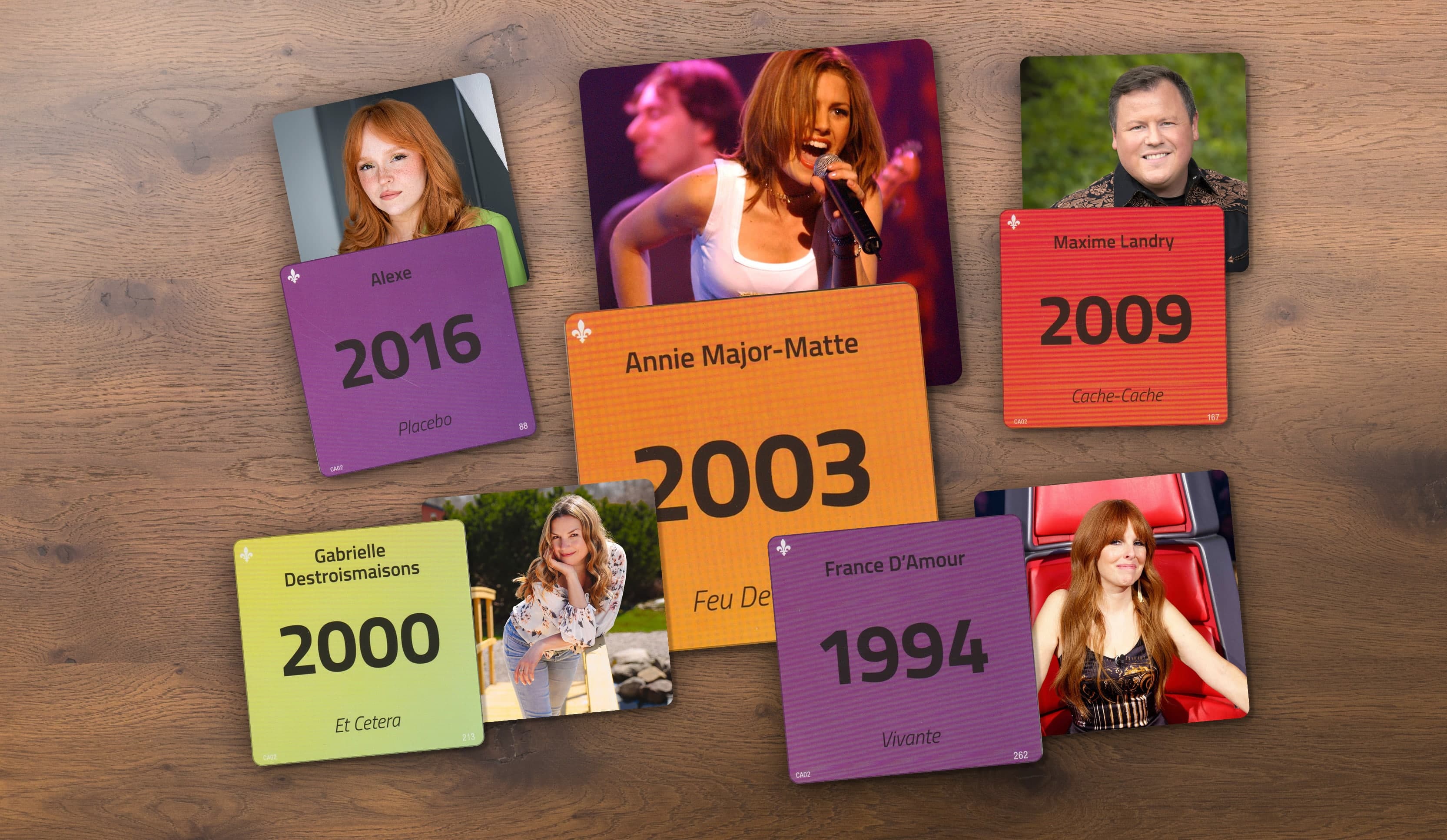 L’objectif est de placer la carte sur une ligne du temps en tentant de trouver l’année de sa parution. Des jetons bonis sont attribués si on identifie correctement l’artiste et/ou le titre de la chanson.