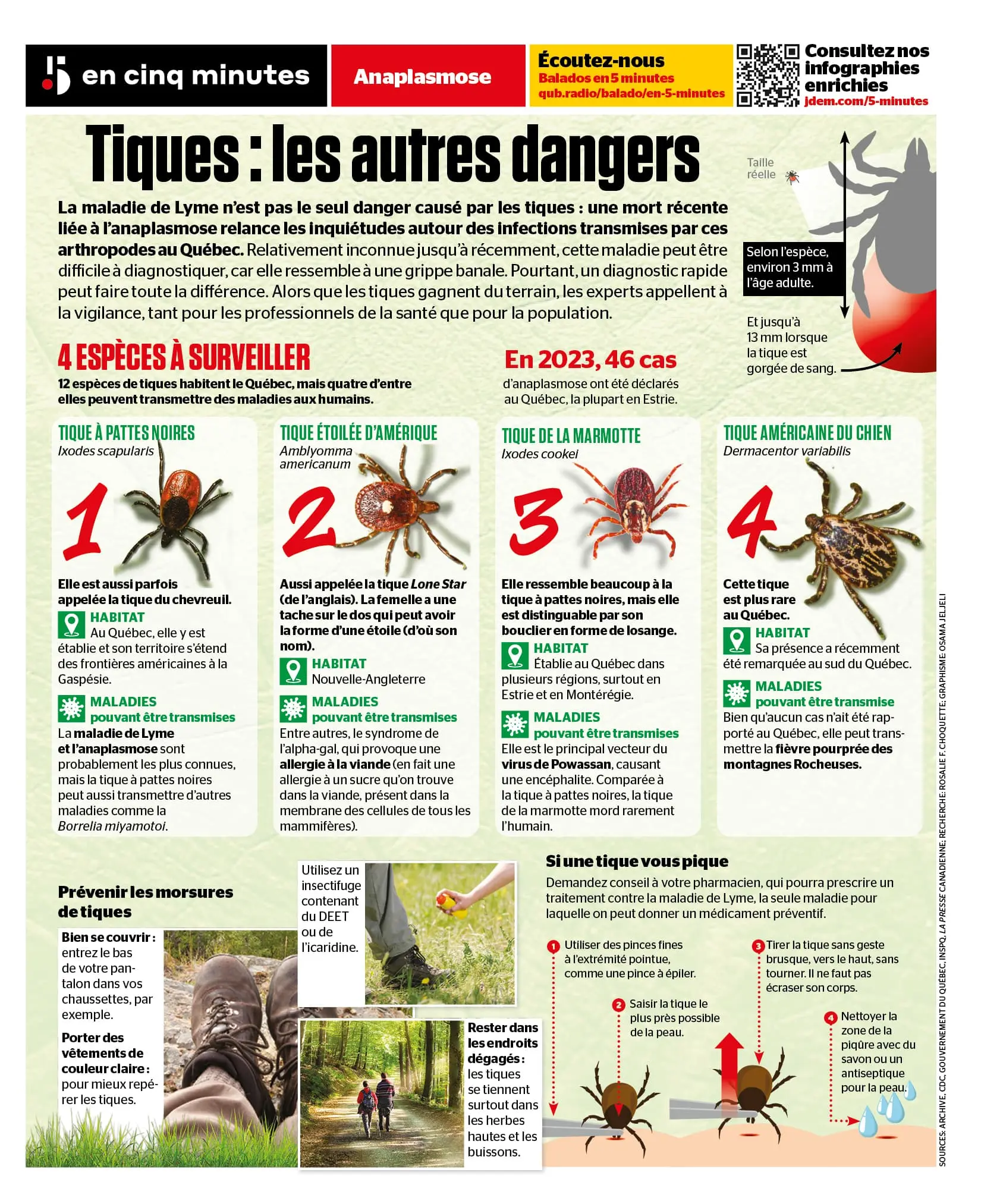 La maladie de Lyme n’est pas le seul danger causé par les tiques : une mort récente liée à l’anaplasmose relance les inquiétudes autour des infections transmises par ces arthropodes au Québec.