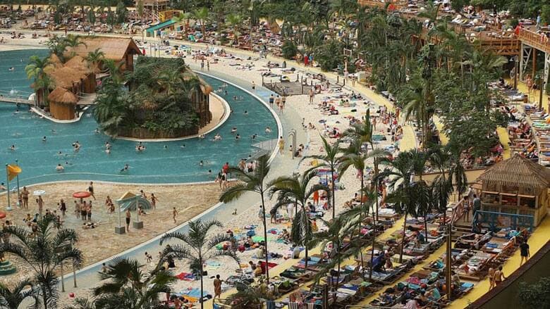 Construit à l’intérieur d’un énorme hangar aérien, ce parc totalement fermé est gardé à une température constante de 26°C. Ouvert depuis 2004, les visiteurs peuvent venir profiter de la plus grande plage intérieure au monde, de nombreux bassins, de palmiers et même d'un soleil artificiel, le tout 24/7.